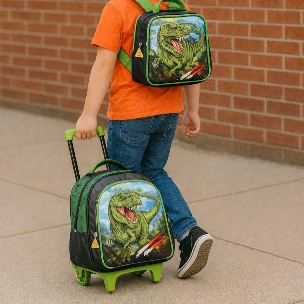 Kit Escolar Mochila Lancheira E Estojo Para Meninos Dinossauro Alça De Costas Reforçada - Trex - Denlex Verde EscuroDescubra o Kit Escolar Mochila Lancheira e Estojo TRex Denlex, perfeito para meninos apaixonados por dinossauros! Com design vibrante e resistente, esse conjunto é ideal para o dia a dia na , unindo praticidade e estilo. A mochila com rodinhas conta com alça de costas reforçada para maior conforto e durabilidade, facilitando o mesmo com peso. A lancheira térmica mantém os alimentos fresquinhos, enquanto o estojo espaçoso organiza lápis e canetas com facilidade.Benefícios principais:- Mochila com rodinhas e alça reforçada para conforto e resistência- Lancheira térmica que conserva alimentos por mais tempo- Estojo compacto e funcional para material escolar- Estampa TRex que encanta meninos e estimula a imaginação- Materiais duráveis, fáceis de limpar e resistentes ao uso diárioEste kit é a escolha certa para garantir organização e diversão para a rotina escolar dos pequenos. Garanta já esse sucesso entre os fãs de dinossauros!Ficha Técnica: Marca: Denlex Material: Poliéster Garantia: 03 meses Altura: 46 cm Largura: 30 cm Profundidade: 17 cm Capacidade em volume: 23 litros Peso líquido: 1,2kg Rodinhas: Sim Compartimentos: 2 compartimentos Bolsos laterais para garrafinhas e sombrinhas: Sim (2)Informações da Mochila: 1 Bolso Principal, 1 Frontal e 2 Laterais para garrafinhas; Mochila de rodinhas e com alças de costas; Estampa Personalizada Dinossauro T-Rex;Informações da Lancheira: Altura: 21 cm Largura: 21cm Profundidade: 10 cm Capacidade em volume: 4,4 litros Peso líquido: 300g Alça de costas Alça de mão Sistema térmicoInformações do estojo: Altura: 11 cm Largura: 23 cm Profundidade: 7 cm Capacidade em volume: 1,7 litros Peso líquido: 150gDúvidas FrequentesQual o prazo de ?Nosso prazo de é de no máximo 1 dia útil, podendo ser até no mesmo dia da confirmação da compra, dependendo do horário.Como o produto vem embalado?Nossos produtos são embalados com embalagens resistentes para que cheguem até você em perfeito estado.O produto possui garantia?Sim, todos os nossos produtos são e possuem garantia de fabricação de no mínimo 90 dias, conforme previsto no código de defesa do consumidor.