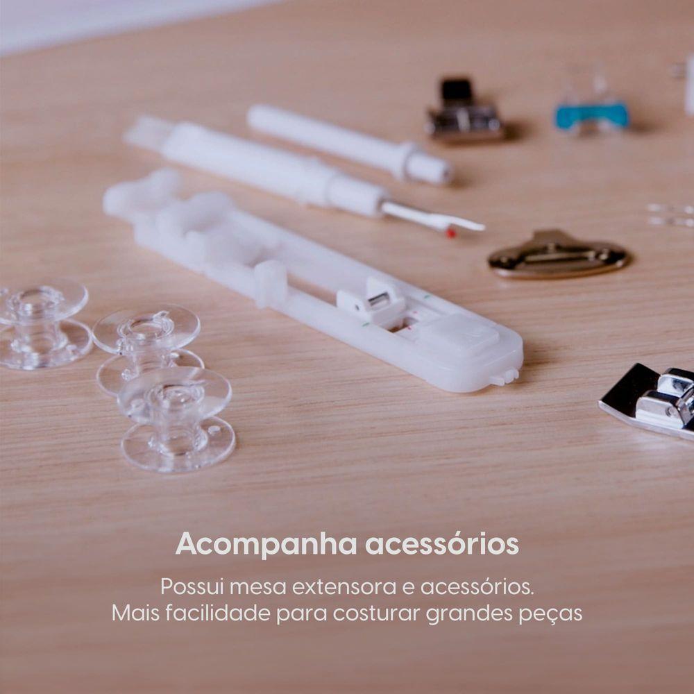 Máquina de Costura Eletrônica JX 11.000 - 200 Pontos 1300 Combinações BivoltA Máquina de Costura JX-11.000 eletrônica oferece versatilidade, precisão e praticidade para diferentes projetos de costura. Com 200 tipos de pontos, incluindo utilitários, decorativos, flexíveis e fontes de letras, permite mais de 1.300 combinações ajustando altura e comprimento dos pontos.O visor LCD facilita a seleção e configuração dos pontos, garantindo ajustes rápidos e intuitivos. Conta ainda com a tecla Start/Stop, que permite acionar a máquina sem o pedal, e um bip sonoro que indica liga/desliga e possíveis erros.Para mais conforto, possui passador automático de linha, uma mesa extensora e um kit de acessórios que inclui bobinas, calcadores para diferentes aplicações, escova de limpeza, chave de fenda e muito mais. A máquina ainda conta com 8 tipos de casa de botão e permite pregar botões de 2 ou 4 furos, ampliando suas possibilidades de uso.O rebaixador de dentes possibilita costuras livres e bordados. Já o parador de agulha permite girar o tecido sem perder o último ponto, garantindo um acabamento impecável. Com velocidade ajustável de até 700 rpm e controlador eletrônico, permite um manuseio preciso para diversos tecidos e projetos detalhados.A Elgin oferece 1 ano de garantia, proporcionando tranquilidade e confiança ao usuário.Características:- 200 pontos de costura;- Mais de 1.300 combinações possíveis;- Visor LCD;- Passador automático de linha;- Velocidade de até 700 rpm;- Mesa extensora inclusa;- Kit de acessórios completo;- Tecla Start/Stop;- 8 casas de botão;- Pregão botão de 2 ou 4 furos;- Rebaixador de dentes;- Parador de agulha;- Garantia de 1 ano.Especificações Técnicas:Nome do produto: Máquina de Costura Eletrônica JX 11.000 - 200 Pontos 1300 Combinações BivoltReferência: SKU: 107Número de pontos: 200Número de combinações: 1331Prega botão: SIM, 2 a 4 furosAcompanha conjunto de acessórios: SIMBraço livre: SIMFontes de letras e números: SIM, 100 fontesVisor LCD: SIMAcompanha mesa extensora: SIMAlça para transporte: SIMPassador automático de linha na agulha: SIMEixo de transmissão em aço: N/ATroca Expressa: SIMVoltagem: bivoltEAN: 7908412508363Cor: BrancoNúmero de Pontos: 200Braço Livre (sim / não): SIMVisor Led (sim / não): SIMAcompanha mesa extensora (sim / não): SIM
