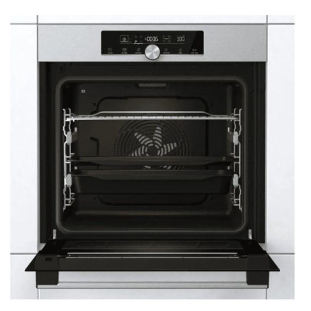 Forno Elétrico De Embutir Air Fry 77 Litros Gorenje Bos6747 60 Cm 220vPorta do forno de vidro triplo com um defletor de calor (CoolDoor)A construção especial inovadora e o vidro na porta isolam o forno, de modo que o calor é mantido no interior, otimizando o consumo de energia, pois o calor não pode escapar da cavidade do forno. Isso torna o forno ainda mais seguro para o usuário, crianças e animais de estimação e evita o aquecimento do ambiente.Cozimento passo a passoStepBake permite o controle completo do processo de cozimento, que pode ser programado manualmente. Basta definir os parâmetros para cada uma das 2 ou 3 etapas desejadas e o forno cuidará de tudo. Nenhuma interação adicional é necessária, tudo o que resta a você fazer é aproveitar o resultado final.Resfriamento dinâmico do forno plus – DC+O sistema DynamiCooling resfria eficientemente o exterior do forno para evitar qualquer dano causado pela alta temperatura. Nos fornos com o sistema DynamiCooling+, os sensores de calor regulam o arrefecimento das paredes exteriores do forno até atingirem uma temperatura de 60 °CHomeMade Plus shapeOs fornos Gorenje são bem conhecidos por sua inovadora cavidade arredondada, que tem sido sua característica distintiva por muitos anos. O formato HomeMade foi inspirado nos tradicionais fornos a lenha e garante melhor circulação de ar em relação aos concorrentes.Assistente ExtraSteam – VAPOREste programa cria o ambiente perfeitamente cozido no vapor que garante que seu pão tenha uma crosta alta e crocante. Tudo o que você precisa fazer é colocar um pouco de água em uma bandeja rasa, selecionar o programa ExtraSteam e deixar o forno fazer o trabalho.GentleBakeEsta função tem tudo a ver com cozimento suave, lento e uniforme. Dessa forma, a umidade fica retida no interior e a comida fica super macia e suculenta. Adequado para preparar carne, peixe ou pastelaria em um nível.FastPreheatOs fornos OptiBake atingem uma temperatura de até 200 ?C em apenas 5 minutos, economizando 30% do tempo necessário para o pré-aquecimento padrão e tornando-os um dos fornos mais rápidos do mercado. Isso é muito conveniente para receitas que exigem um forno pré-aquecido. Um sinal de luz e som informa quando a temperatura está adequada.?Air FryAgora você pode ter a crocância e o sabor dos alimentos fritos sem as calorias extras. Este método de cozimento extremamente intensivo com ar quente não requer nenhuma gordura para garantir uma crosta dourada crocante perfeitamente deliciosa. Em combinação com a assadeira especial perfurada (dependendo do modelo), que encapsula perfeitamente o prato em toda a volta, você obterá resultados ainda melhores. Adequado para pequenos cortes de carne, peixe, legumes e produtos congelados pré-preparados, como batatas fritas e nuggets de frango.FrozenBakeEste programa de cozimento eficiente é a escolha perfeita para todos os alimentos congelados e refeições pré-preparadas.Função PizzaEste programa com ajuste de temperatura de cozimento até 300o C foi projetado especificamente para ajudá-lo a assar a pizza perfeita, focaccia, pão e iguarias assadas semelhantes.Grill perfeitoOs melhores resultados de cozimento são alcançados com uma combinação de aquecedores maiores e menores, onde o último é posicionado dentro do maior. O posicionamento inteligente dos aquecedores permite uma distribuição de calor ideal e fornece sempre os melhores resultados de cozimento, para que os alimentos fiquem crocantes por fora e macios por dentro.2 anos de garantia.Itens inclusos: 1 Grelha; 1 bandeja rasa; 1 bandeja fundaBandeja Air Fryer: ; Vendida separadamenteDetalhes TécnicosAdvanced LineClasse energética: ACor: Preto e InoxCor do puxador: InoxPainel frontal: InoxInterior do forno esmaltadoInox TouchFreeForno multifuncional - 77 l Capacidade grandeVolume útil do forno: 77 lDimensão da assadeira maior: 1.360 cm²Interior da porta do forno removívelHomeMade Plus cavidade : HomeMADE® cavidade arredondada - inspirado nos tradicionais fornos a lenhaFormato do botão: Botões ergonômicosModos de aquecimento:Aquecimento superior e inferiorAquecimento superior e inferior com ventilaçãoGrill infravermelhoAquecimento posterior com ventilaçãoGrill e ventilaçãoAquecimento inferior e posterior com ventilaçãoDescongelarPré-aquecimento rápido, 200ºC em 6 minutosWarmPlate: aquecimento de pratosAssa em níveis diferentes ao mesmo tempoAssadeira esmaltada fundaAssadeira esmaltada rasaGrelhaDC+ Sistema de ventilação dinâmico PlusCool door - porta friaEsmalte EcoConsumo de energia: 0,71 kWh (Ventilação), 0,97 kWh (Convencional)Potência Nominal: 3,5 kWDimensões (LxAxP): 59,5 × 59,5 × 56,4 cmDimensões da embalagem (AxLxP): 64,5 × 70 × 69,5 cmDimensões de encastre (LxAxP) (min-max): 56-56,4 × 59-60 × 55 cmPeso líquido: 29 kgPeso Bruto: 33 kg02 anos de garantia.