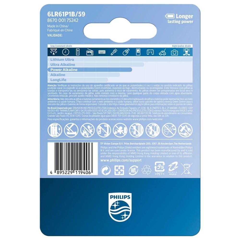 Bateria Alcalina 9 Volts - 200200 - Philips
