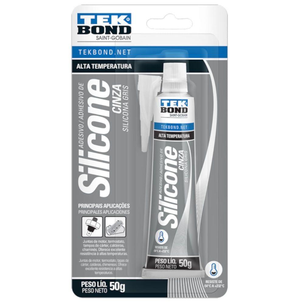 Adesivo De Silicone Acetinado Cinza - 22014001202 - TekbondAdesivo de Silicone Acetinado Cinza - 22014001202 - TEKBONDDescrição:Pode ser utilizado tanto na indústria automotiva como na construção civil. Possui excelente resistência a óleo de motor e óleos lubrificantes, pode ser aplicado em tampas de válvulas, caixas de câmbio, caixas de engrenagens, tampa de motores etc.Características:É um adesivo selante tixotrópico monocomponente, baixo módulo, antifungo e de cura acética. Sua cura ocorre em temperatura ambiente e na exposição à umidade do ar.Modo de Uso para Bisnasgas de 50 Gramas:1. As superfícies de aplicação devem ser limpas com álcool ou acetona, secas e firmes. Não utilizar querosene ou gasolina para a limpeza das superfícies.2. Utilize a tampinha para romper o lacre da bisnaga.3. Rosquear o bico aplicador e cortar a ponta em um ângulo de 45°C.4. Aplicar um cordão de silicone de espessura entre 1,5 a 3,0 mm na superfície, pressionando a bisnaga pelo fundo.5. Montar as partes antes do silicone formar película.6. Apertar manualmente os parafusos e remover os excessos de produto.7. Após 2 horas faça o aperto final dos parafusos.8. Após o uso, mantenha o bico aplicador no cartucho e deixe uma pequena quantidade de produto acima do bico para formar um tampão. Na reutilização, retire o tampão. Após aberto reutilizar o produto em até duas semanas.Limitações de Uso:Este produto não deve ser usado em vidros laminados, metal corrosível, espelhos, superfícies pintadas e/ou porosas, superfícies alcalinas, aquário, acrílicos, concreto, cimento, tijolo, pedra calcária, zinco, placa de aço galvanizado. Não recomendado para plásticos à base de polietileno, polipropileno e policarbonato.Não indicado para fachadas de vidro e qualquer adesão estrutural que necessite resistência, contato de alimentos, imersão contínua em meios líquidos e em espaços totalmente fechados.Não aceita pintura.Dados Técnicos:Aparência (visual): Pasta vermelha com odor característico (ácido acético)Densidade a 25 ºC (g/mL): 0,93 à 1,15Tempo de formação de película: 5 à 20 minutosTemperatura ideal de aplicação: + 5 à 35°CTemperatura de trabalho: - 54 à 316°CAlongamento à ruptura: ?200 %Dureza Shore A: 18Cura gradativa a 23°C e 55% U.R. após 24 horas: ?3 mm* Imagem meramente ilustrativa.Cor - CinzaVaria por - Cormeli_shipping_mode - me1