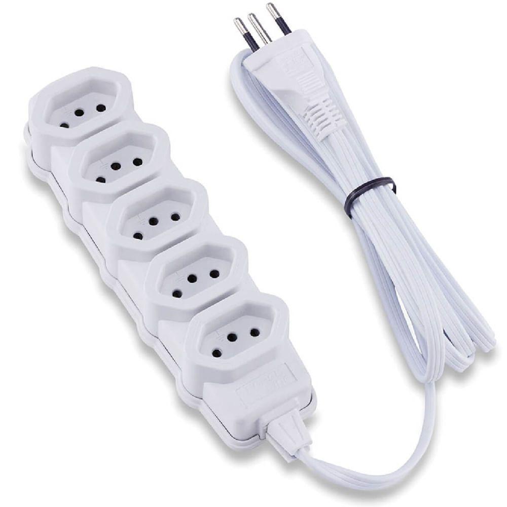 Extensão Com Terra 5 Entradas Cabo 3x0,75mm 5 Metros - 180200022 - Forceline