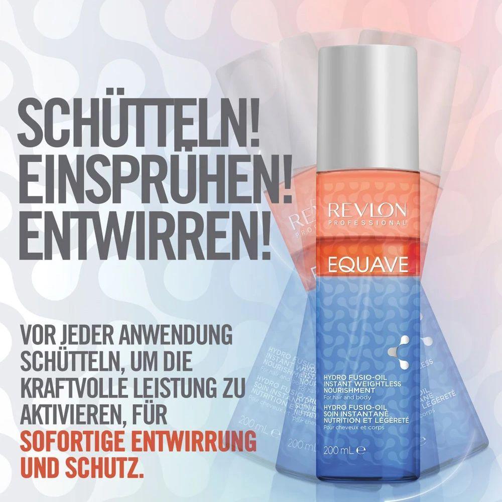 Revlon Professional Equave 3 Phases Hydro Fusio-oil Instant Conditioner 200mlExperimente a combinação perfeita de hidratação e nutrição profunda com o Revlon Professional Equave 3 Phases Hydro Fusio-Oil Instant Conditioner. Este condicionador trifásico revolucionário proporciona um tratamento instantâneo para cabelos secos e danificados, oferecendo uma fusão de óleos nutritivos que hidrata profundamente, desembaraça e deixa os fios macios e sedosos, sem pesar.Com três fases distintas de ação, ele nutre e protege a fibra capilar enquanto proporciona brilho intenso e controle do frizz. Sua fórmula enriquecida com óleos naturais fortalece os cabelos, mantendo-os saudáveis e revitalizados. O spray facilita a aplicação, garantindo desembaraço instantâneo e um toque leve e suave.Benefícios:-Hidratação profunda e nutrição intensa-Desembaraço instantâneo sem pesar os fios-Controle do frizz e brilho radiante-Fortalece e revitaliza a fibra capilar-Fórmula leve com óleos naturais para cabelos saudáveis e sedososO Revlon Equave 3 Phases Hydro Fusio-Oil Conditioner é o aliado perfeito para quem busca uma solução rápida e eficaz para cabelos ressecados e sem vida, deixando-os incrivelmente macios, hidratados e com um brilho natural.*Imagens Meramente Ilustrativas.*As cores do produto podem variar de acordo com o monitor, a iluminação do ambiente e a sua percepção visual.*Verifique nossas políticas internas para que não haja nenhuma dúvida no processo de entrega ao finalizar a compra.