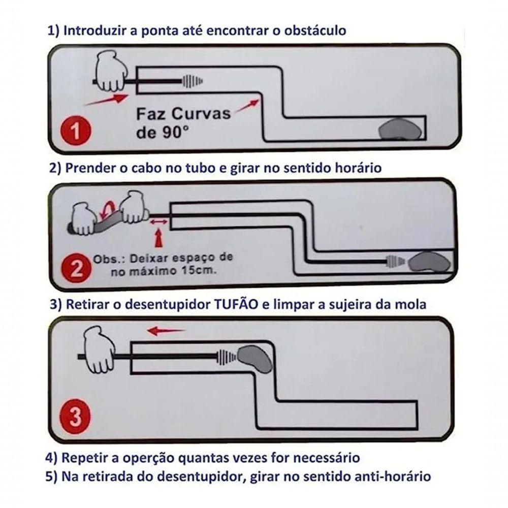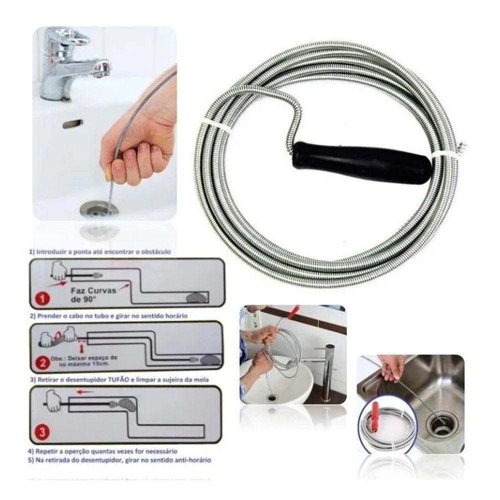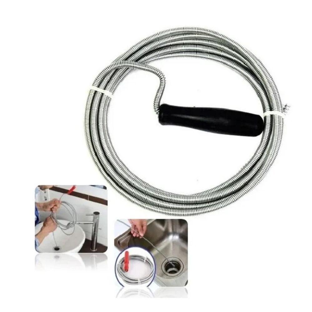 Desentupidor Tubulação Manual Flexível Aço Cano Ralo 3m Pias