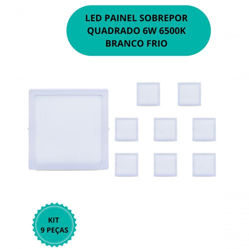 Plafon Led Sobrepor 6w Quadrado 6500k Branco Frio Bivolt - Kit Com 9 Un.