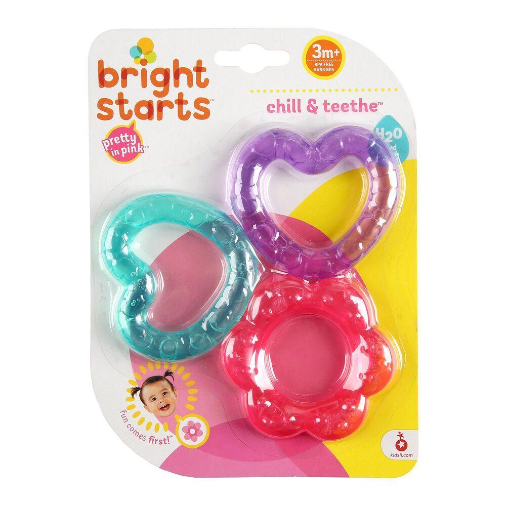 Conforto E Diversão: Kit De Mordedores Resfriáveis Para Alívio Da Dentição Do BebêA Bright Starts acredita que a alegria é essencial para criar memórias duradouras. Desde os primeiros balbucios até o aniversário mais esperado, cada criança merece um pouco mais de magia em seus dias. Com isso em mente, a nossa missão é trazer mais felicidade a cada instante da vida dos pequenos!O Kit Mordedores Chill & Teethe é um conjunto de 3 unidades projetado especialmente para proporcionar alívio gengival ao seu bebê. Com um design cativante que combina formatos divertidos e cores vibrantes, esses mordedores são perfeitos para estimular o interesse do seu pequeno enquanto aliviam o desconforto da dentição. Material: Polipropileno e silicone : Livre de BPA e aprovado pelo InMetro Design: Texturizado e fácil de segurar, ideal para as pequenas mãozinhasUm dos grandes diferenciais deste mordedor é sua capacidade resfriável. Ao ser colocado no freezer, ele proporciona um alívio ainda maior para as gengivas doloridas do seu bebê. Para utilizá-lo, basta seguir um simples passo a passo: Coloque o mordedor no freezer por um determinado período. Retire e, após alguns instantes, ofereça ao seu bebê. O frio aliviará as gengivas e proporcionará conforto.Em relação à higienização, o mordedor pode ser facilmente lavado com água e sabão neutro, garantindo que ele esteja sempre limpo e para o uso. O produto é desenvolvido especificamente para que os bebês possam levá-lo à boca de forma segura, mas recomendamos que os pais sempre supervisionem o uso e evitem que o mordedor caia em superfícies sujas.Especificações do produto incluem: Peso: 0,079kg Dimensões: 14,3 cm x 1,27 cm x 19,38 cm Tipo/Categoria: InfantilObserve que este é um produto com prazo para preparação, com em até 2 dias úteis. Proporcione ao seu bebê momentos de prazer e conforto durante a dentição com o Kit Mordedores Chill & Teethe da Bright Starts!