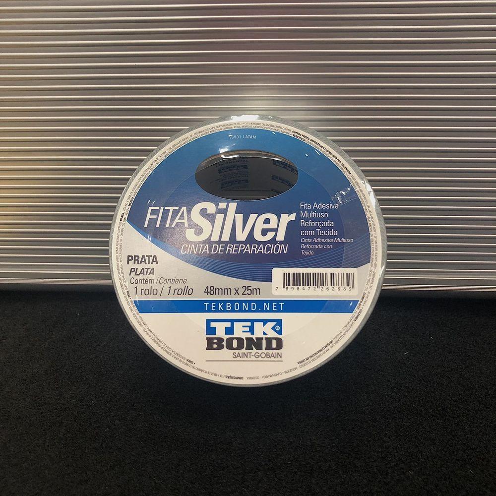 Fita Adesiva Reforçada Silver Tape Prata 48mmx25m TekbondFita Adesiva Reforçada Silver Tape Prata 48mmx25m Tekbond - FITA SILVER TAPE PARA REPAROSCaracterísticas Gerais do Produto: - Modelo: Silver Tape - Marca: TekBond - Instruções de Uso: A Fita Supertape Silver Transparente Tekbond pode ser aplicada em qualquer superfície ou objeto limpo, seco, livre de pó e oleosidade. - Características: 48mm de largura; Comprimento do rolo: 20 metros; Depois de aplicada, ela resiste ao com a água. - Ideal Para: Reparos em diversos tipos de objetos e superfícies Garantia: - Sem Garantia