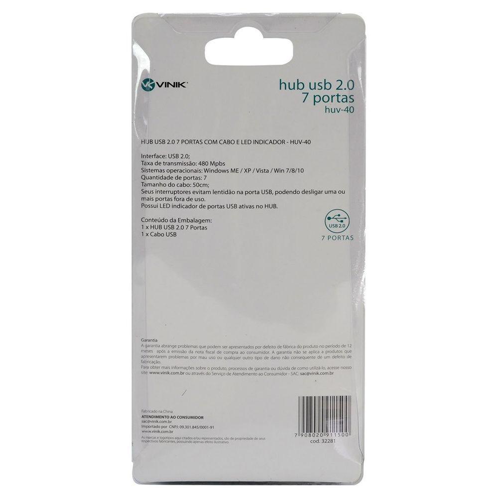 Hub Usb 2.0 7 Portas Com Cabo Huv-40