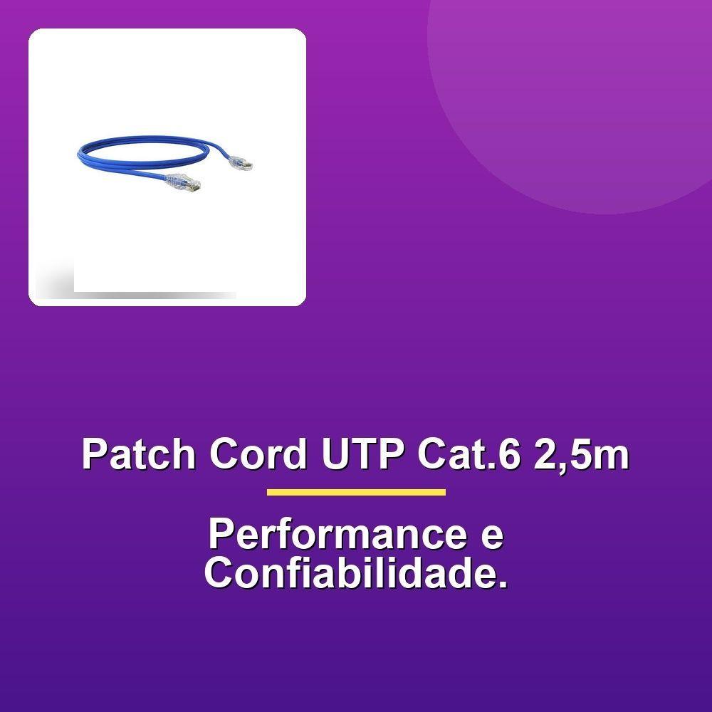 Patch Cord U/utp Cat.6 Cmx 2,5m AzulO Patch Cord U/UTP CAT.6 é o escolha ideal para sistemas de cabeamento estruturado, oferecendo tráfego de voz, dados e imagens de alta qualidade. Com sua construção 100% fabril e certificado Anatel, você pode ter confiança na performance e segurança do seu sistema.A aplicação ideal é em sistemas horizontais ou secundários, de uso interno, em salas de telecomunicações ou ponto de acesso na área de trabalho para tomadas de serviços, o Patch Cord UUTP CAT.6 garante a melhor largura de banda, de até 250 MHz.Com um cabo de 4 pares trançados compostos de condutores flexíveis de cobre, 24 AWG, isolados em polietileno especial, e uma capa externa em PVC retardante à chama CMX, na cor vermelha e com comprimento de 2,5 metros, este produto excede os limites estabelecidos nas normas para a categoria. Além disso, é compatível com toda a linha SohoPlus.O Patch Cord U/UTP CAT.6 é o escolha ideal para sistemas de cabeamento estruturado, oferecendo tráfego de voz, dados e imagens de alta qualidade. Com sua construção 100% fabril e certificado Anatel, você pode ter confiança na performance e segurança do seu sistema.A aplicação ideal é em sistemas horizontais ou secundários, de uso interno, em salas de telecomunicações ou ponto de acesso na área de trabalho para tomadas de serviços, o Patch Cord UUTP CAT.6 garante a melhor largura de banda, de até 250 MHz.Com um cabo de 4 pares trançados compostos de condutores flexíveis de cobre, 24 AWG, isolados em polietileno especial, e uma capa externa em PVC retardante à chama CMX, na cor vermelha e com comprimento de 2,5 metros, este produto excede os limites estabelecidos nas normas para a categoria. Além disso, é compatível com toda a linha SohoPlus.