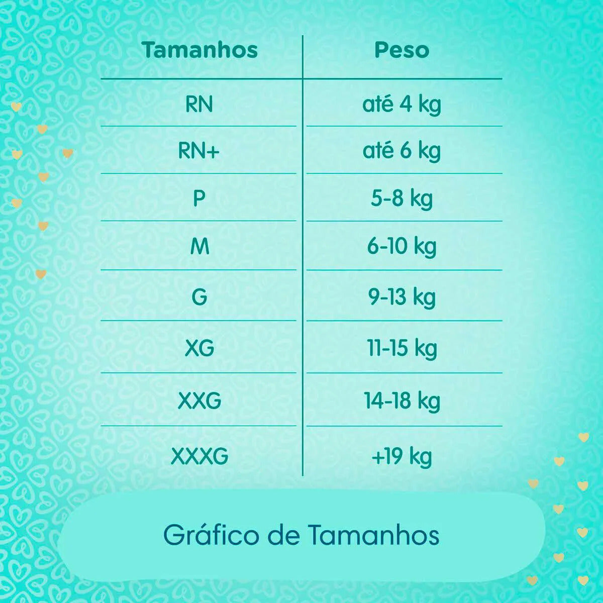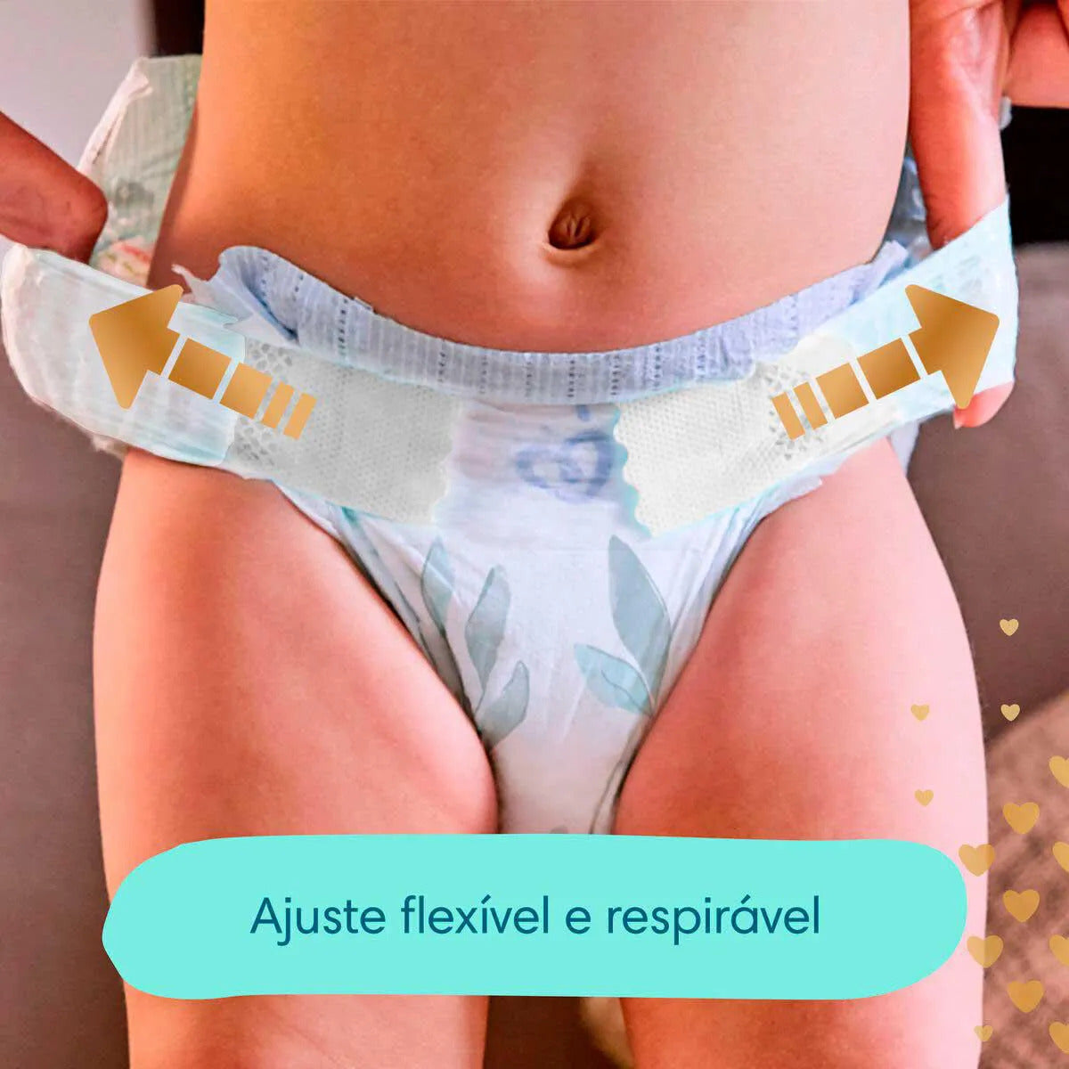 Para Que Serve:O que é a Fralda Pampers Premium Care Hipoalergênico? Pampers Premium Care é ideal para que a pele do seu bebê fique sempre como pele de bebê, oferecendo máxima absorção de Pampers e uma exclusiva loção hipoalergênica, a Pampers Premium Care ajuda a prevenir assaduras. Além disso, é suave como o algodão e ultra respirável. Não contém fibras de algodão Assim como os demais tamanhos, o XXXG, indicado para bebês com +19kg, é ultra respirável e ajuda a manter a pele do bebê sempre sequinha e fresca por até 12 horas. Para que serve a Fralda Pampers Premium Care Hipoalergênico? A fralda Pampers Premium Care pode ser usada durante o dia ou à noite. Visando à mobilidade, o modelo permite que o bebê se movimente sem desconforto, tanto durante o sono quanto durante as atividades do dia a dia. Composta por uma proteção macia e suave como algodão, seu formato possui canais de ar que permitem a respiração da pele, mantendo-a sequinha e arejada. Seu interior contém loção hipoalergênica exclusiva que previne alergias e irritações, além de contar com a tecnologia Algodão-Sec, que absorve e retém a umidade no interior da fralda, mantendo-a sequinha por até 12 horas e protegendo o bebê contra assaduras. Como usar a Fralda Pampers Premium Care Hipoalergênico? Coloque o bebê sobre a fralda, desgrude as fitas e puxe-as. Grude as fitas sobre a faixa decorada. Benefícios e diferenciais Máxima absorção de Pampers. Loção hipoalergênica. Ultra respirável. Suave como algodão. Ajuste cômodo e flexível: esticam e se ajustam aos movimentos do seu bebê. Barreiras anti-derrames. Novos desenhos para o dia e para a noite. Composição Celulose, Polímero Superabsorvente, Polietileno, Polipropileno, Poliéster, Adesivos, Elásticos, Fragrância, Petrolato, Álcool Estearílico e Extrato de Aloe Barbadensis. Advertências Mantenha fora do alcance das crianças e animais. Se houver irritação, suspenda o uso imediatamente e procure orientação médica. Descarte após usar. Não jogue no vaso sanitário. Não deixe por muito tempo a fralda na criança, pois pode gerar assaduras.