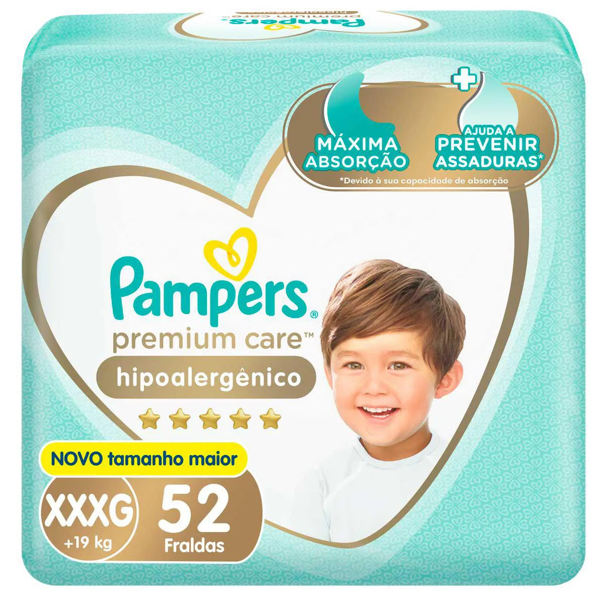 Fralda Pampers Premium Care Hipoalergênico Jumbo Xxxg 52 Unidades