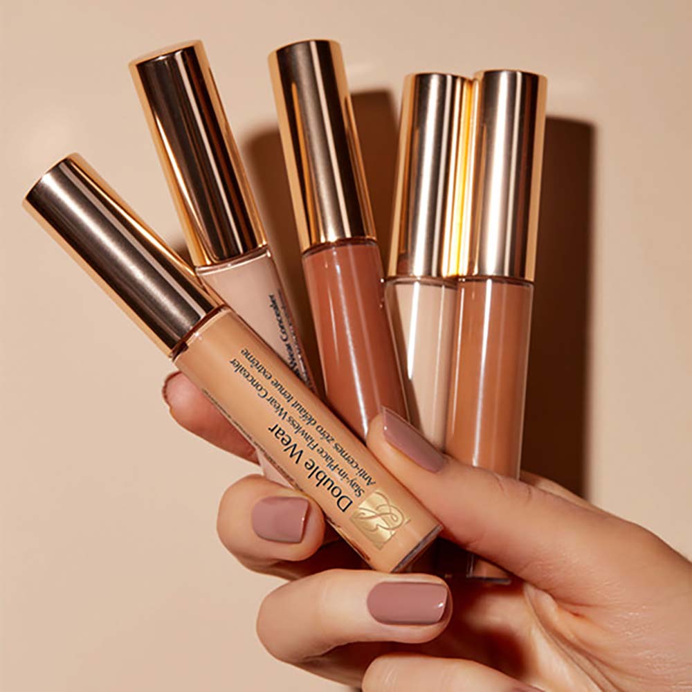 Use o corretivo Double Wear com o pincel para corretivo 5. Passe o corretivo nas costas da mão e, em seguida, passe o pincel na área desejada. Misture bem.