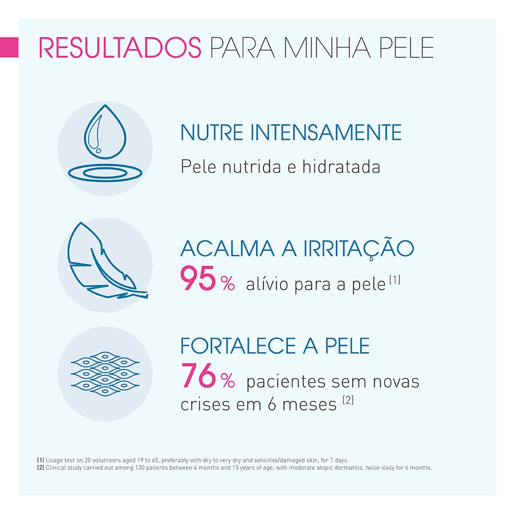 Atoderm Intensive Baume possui ação antibacteriana graças ao Gluconato de Zinco e acalma pruridos, irritações e vermelhidões (PEA + B-Sitosterol).