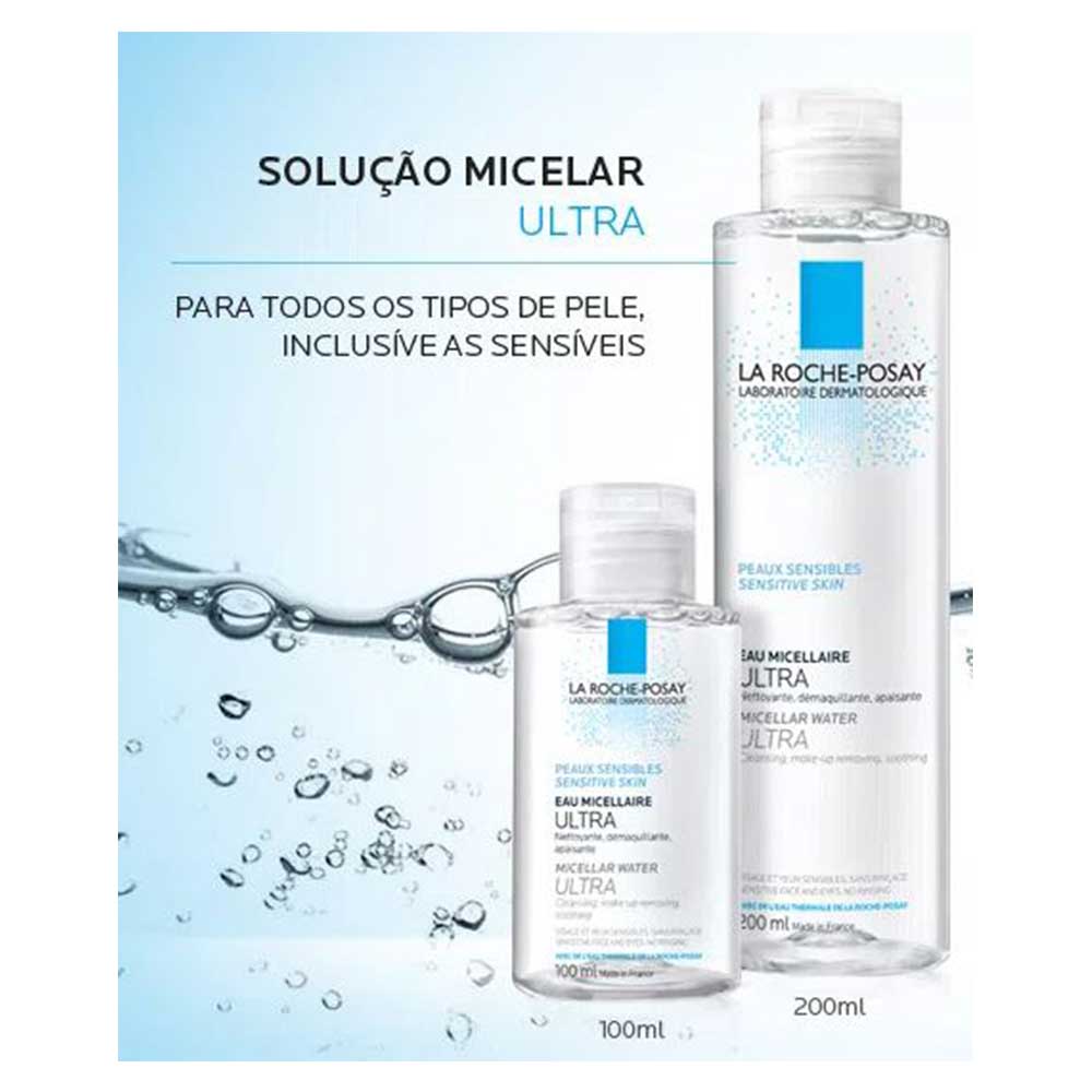 Solução Micelar Eau de Micellaire Ultra de La Roche-Posay é um demaquilante capaz de oferecer uma limpeza com tolerância maximizada e testada sob controle dermatológico, removendo ainda as impurezas e a maquiagem. Indicado: Para todos os tipos de pele, principalmente as sensíveis. Benefícios:Ultra Eficácia: Purifica a pele, remove as impurezas mais profundas, inclusive as da poluição. E também tem um alto poder demaquilante, removendo com facilidade a maquiagem. • Ultra Cuidado: Possui em sua composição a poderosa Água Termal La Roche-Posay que tem ação antioxidante, acalma e suaviza a pele. • Ultra Segurança: Ideal até para peles mais sensíveis. Sem parabenos, sem álcool, sem corantes e sem sabão. A Solução Micelar Eau de Micellaire Ultra elimina as impurezas e resíduos sem agredir a pele, preservando os lipídios e as enzimas epidérmicas importantes para sua proteção. Rica em Água Termal de La-Roche Posay, acalma e suaviza a pele. Muito além de um demaquilante, um cuidado diária da pele. Sua textura Oil-free permite, também, uma higienização profunda e completa de três áreas: rosto, área dos olhos e lábios. Benefícios: • Alto poder demaquilante; • Purifica a pele, remove até as partículas de poluição; • Rica em Água Termal La Roche-Posay; • Sem enxágue • Sem parabenos,sem corantes, sem álcool, sem sabão. Modo de Usar: Aplicar com um algodão sobre o rosto, contorno dos olhos e lábios. Sem enxágue.