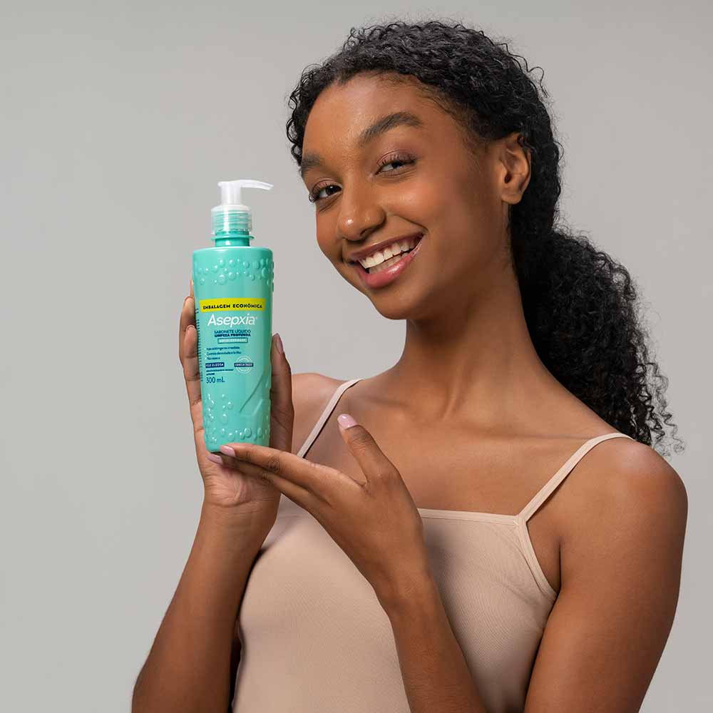 Asepxia Sabonete Líquido Limpeza Profunda é a limpeza ideal para deixar a pele livre de impurezas e oleosidade que não resseca nem agride. É ideal para a pele oleosa. Limpa profundamente, oferece ação adstringente imediata e não resseca a pele! Sua fórmula contém2% DE ÁCIDO SALICÍLICO para controlar o excesso de oleosidade e brilho. Hipoalergênico