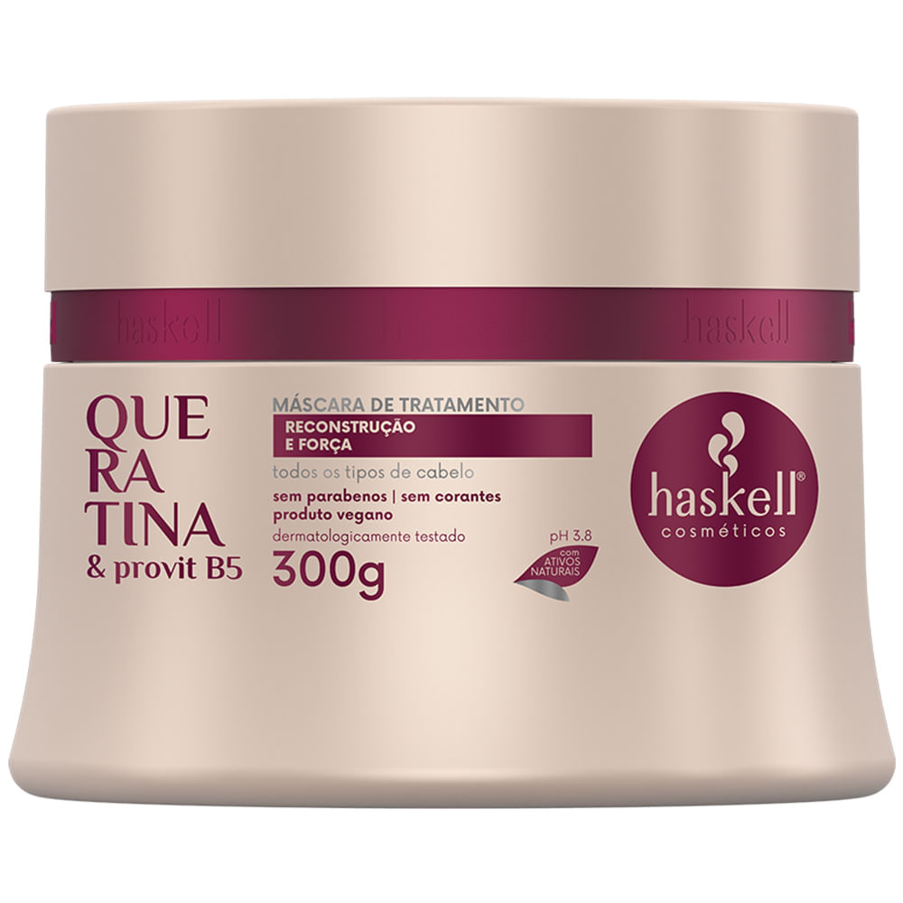 Indicação: Para reconstruir e dar força a todos os tipos de cabelo. A linha Queratina e Provit B5 foi desenvolvida para repor a massa proteica dos cabelos, devolver a queratina perdida nos processos mecânicos e químicos, bem como proporcionar resistência e elasticidade aos fios. A linha é composta por Shampoo, Condicionador, Máscara de Tratamento, Finalizador, Queratina Líquida e Nectavita. Todos os produtos são veganos, sem parabenos e sem glúten. Máscara Queratina e Provit B5 –Modo de Uso: A Máscara Queratina e Provit B5 tem pH 3,8, é vegana, sem corantes, sem parabenos, sem glúten. No cronograma capilar, é indicada para a etapa de Reconstrução. Ela repõe a queratina na fibra capilar e, ao mesmo tempo, promove a hidratação dos fios. Possui alto potencial para proporcionar deslizamento e maleabilidade aos cabelos. Promove reestruturação ideal para cabelos quimicamente tratados ou danificados naturalmente no dia a dia. Modo de Usar: Após lavar os cabelos, aplique a máscara mecha por mecha, do comprimento às pontas. Massageie e deixe agir de 3 a 5 minutos. Se preferir, faça o uso de touca térmica. Enxágue em seguida, retirando todo o resíduo de creme dos cabelos. Potencialize os resultados utilizando toda a linha Queratina & Provit B5. Principais Ativos: QUERATINA VEGETAL • Proteína fibrosa, que estrutura o fio; • Confere resistência e elasticidade; • Evita a quebra e reconstrói o fio danificado. PRÓ-VITAMINA B5 (PANTENOL) • Proporciona hidratação prolongada; • Promove resistência, leveza e brilho; • Age na redução das pontas duplas; • Ajuda na recuperação dos fios;
