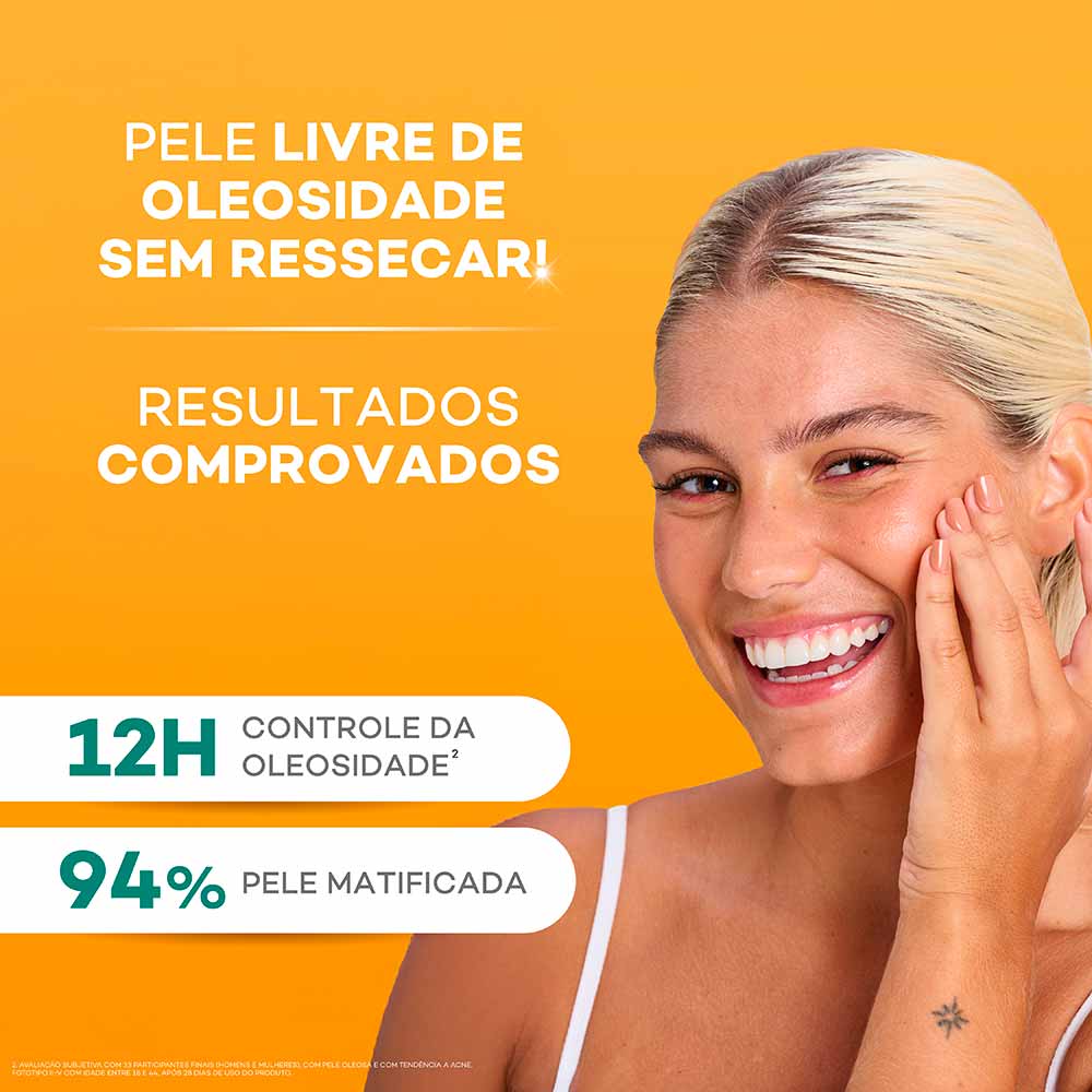 Os resultados dizem tudo: 12 horas de ação contra oleosidade, deixando a pele 96% mais matificada e 97% livre do efeito rebote. Além disso, auxilia na desobstrução dos poros e na renovação da pele.