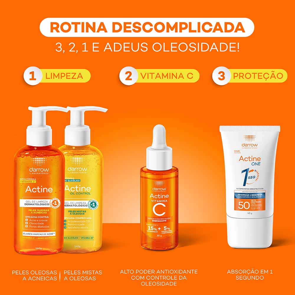 Para potencializar o controle da oleosidade e garantir uma pele sempre equilibrada, utilize o produto diariamente. Incluir o gel numa rotina de cuidados com protetor solar e hidratante oil-free da linha Actine vai manter sua pele mais saudável.