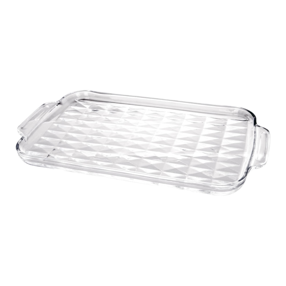 Alças ergonômicas que facilitam o manuseio e o transporte da travessa.