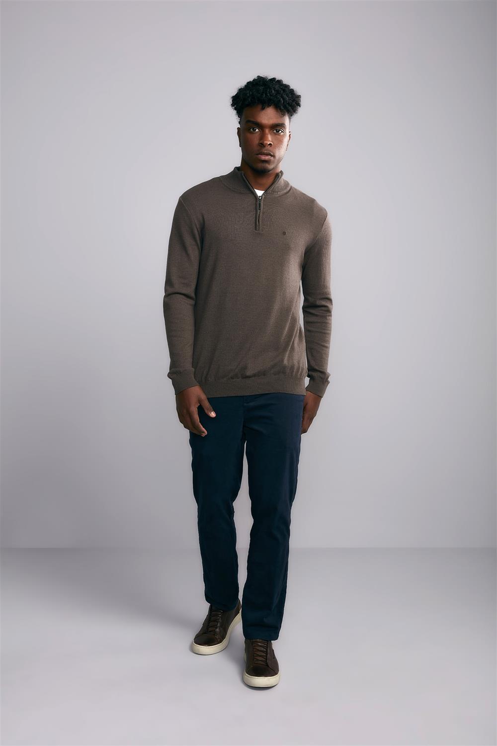 Tricot Gola 1/2 Zíper Slim Fit - Marrom Café