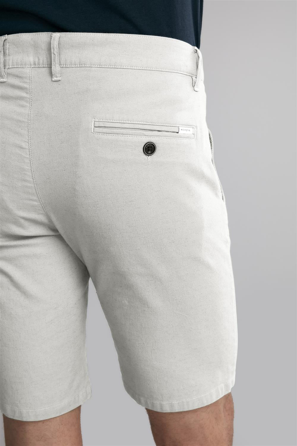 A Bermuda Viscolinho Comfort tem a composição de 70% Algodão, 15% Linho, 12% Viscose e 3% Elastano e é confeccionada em Linho, um tecido orgânico confeccionado em fibras naturais, por isso, ele possui tramas mais abertas fazendo com que as peças sejam mais frescas.