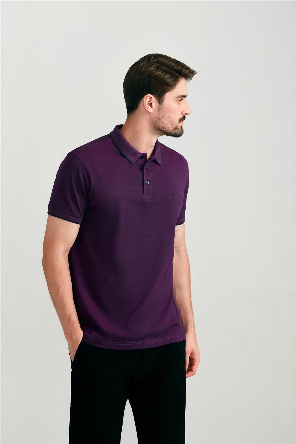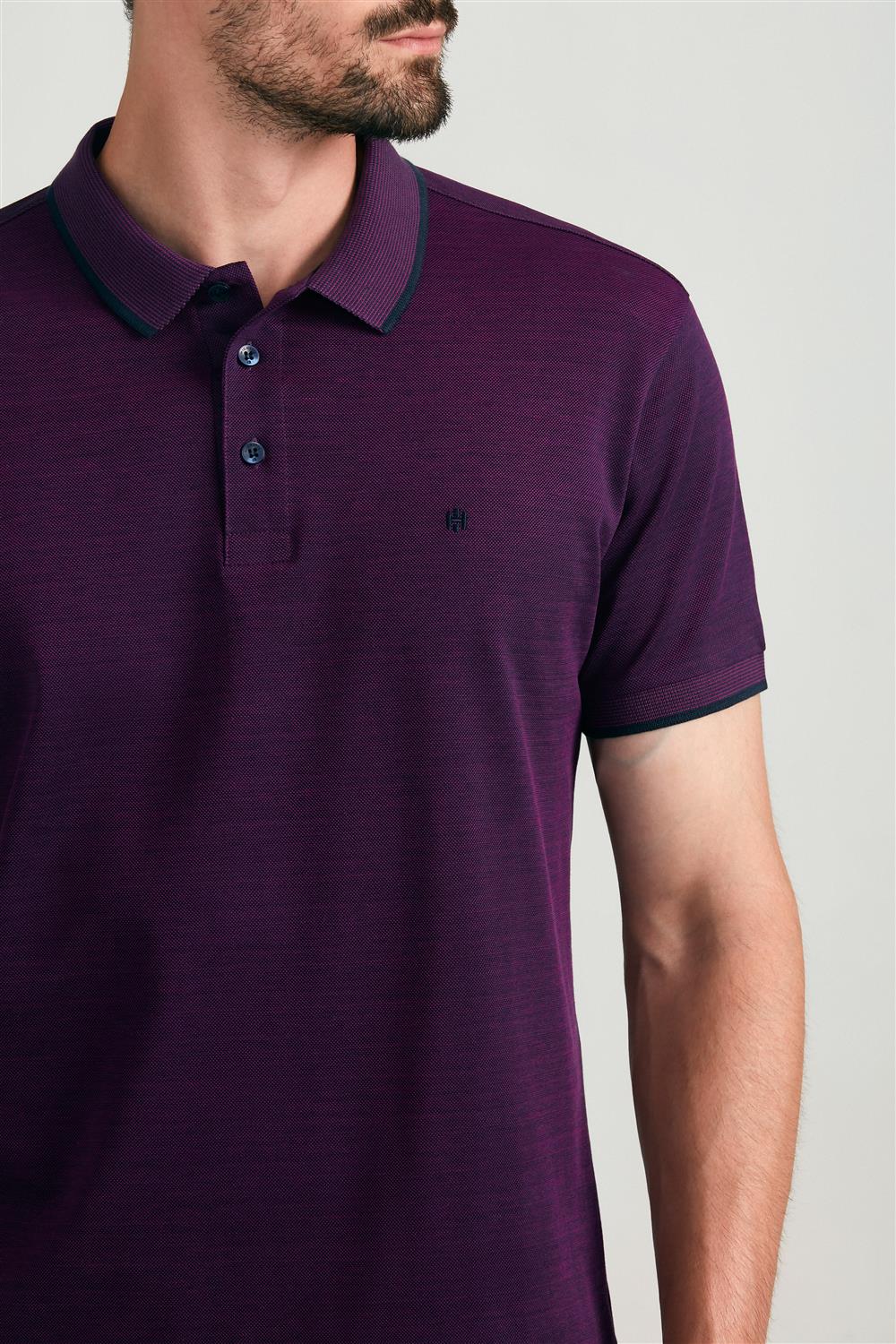 Polo Manga Curta Pima Slim Fit - Azul Marinho / Rosa Fúcsia