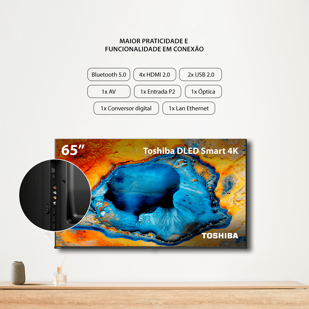 Smart TV DLED 65" 4K Toshiba 65C350NS VIDAA 4 HDMI 2 USB Wi-Fi - TB032MOUT [Remanufaturado]