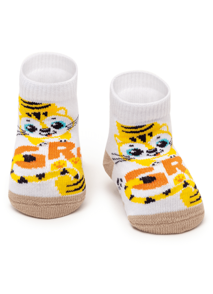 A meia soquete com desenho divertido de tigres, é produzida com algodão macio em sua maior parte e poliamida, possui cano de altura média. Instruções de Lavagem: LAVAGEM A MÃO; NÃO ALVEJAR Instruções de Conservação: NÃO SECAR EM TAMBOR; NÃO PASSAR; NÃO LIMPAR A SECO (MAIS INFORMAÇÕES, VIDE NA ETIQUETA) Instruções de Garantia: DEVERÁ SER ENCAMINHADO DENTRO DA EMBALAGEM ORIGINAL; SEM INDICAÇÕES DE USO; ACOMPANHADO DE NOTA FISCAL E COM TODOS OS ITENS CONSTANTE NA SOLICITAÇÃO DA COMPRA