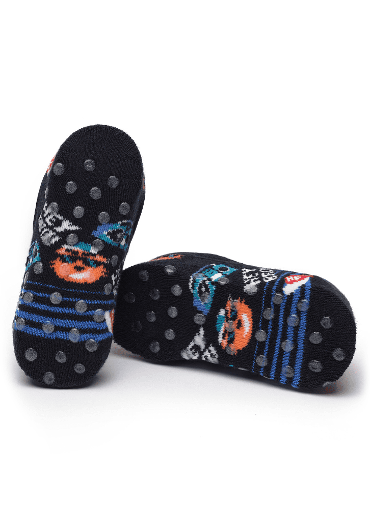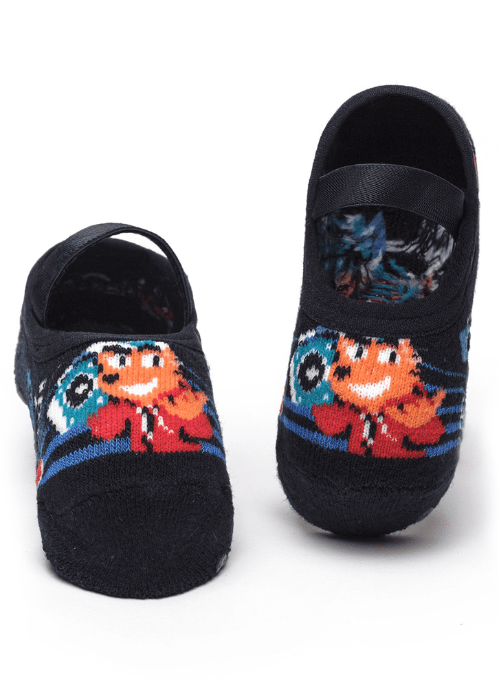 A meia com modelagem sapatilha é produzida com algodão macio, possui acabamento em viés, elástico confortável, antiderrapante com aroma e desenhos divertidos.