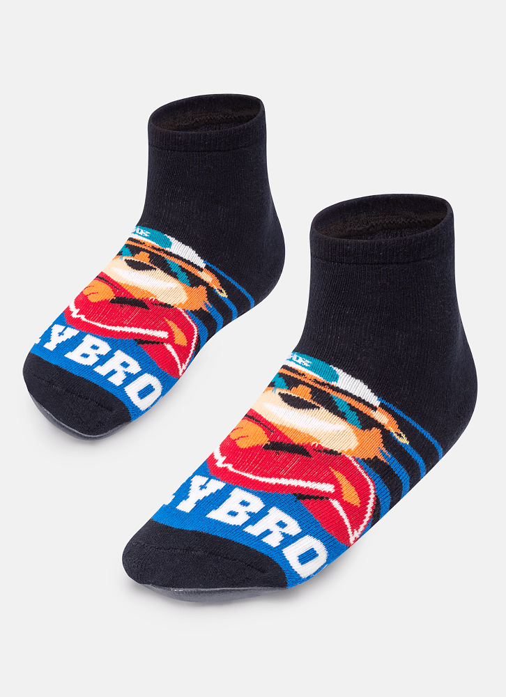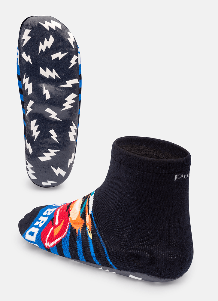 A meia pansocks é feita com algodão macio, possui solado emborrachado, cano confortável e desenhos divertidos.