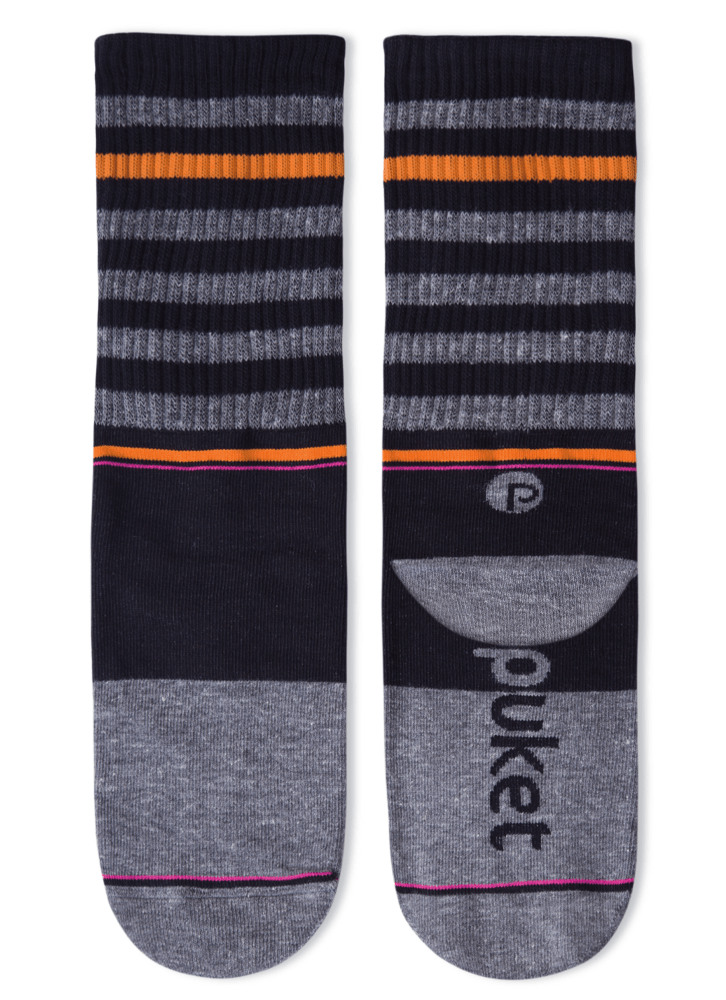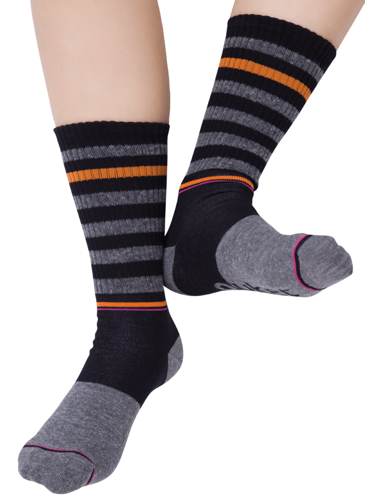 A meia básica possui cano mais longo; mais ou menos na metade da canela, e punho canelado que veste de forma confortável, é produzida com algodão macio em sua maior parte e poliamida. O punho canelado com listras coloridas e os contrastes de cores no cano e calcanhar, fazem a meia ficar super divertida e moderna; ideal para ser usada com tênis e sapatos. Instruções lavagem: Lavar a mão Não usar alvejante/ clareador Não secar em tambor Não passar Não limpar a seco