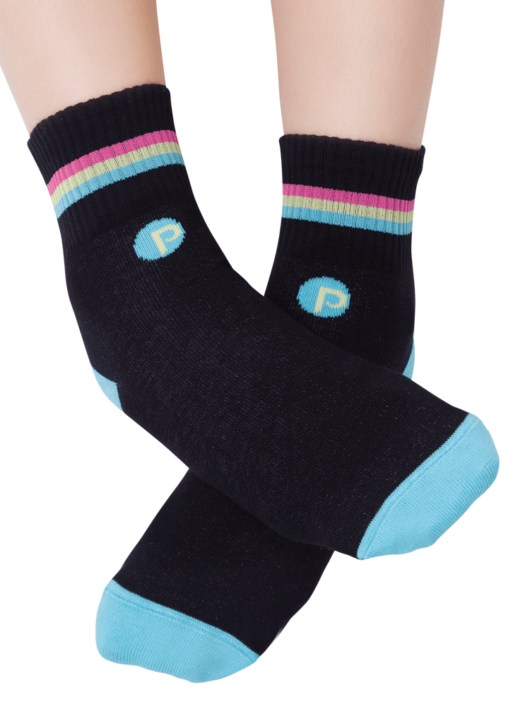 A meia soquete possui cano de altura média, é produzida com algodão macio em sua maior parte e poliamida. A meia possui um desenho de arco íris e nuvem, fazendo uma brincadeira de pé direito e pé esquerdo; as listras no punho e o contraste de cor na ponteira fazem a meia ficar super divertida e moderna; ideal para ser usada com tênis e sapatos. Instruções lavagem: Lavar a mão Não usar alvejante/ clareador Não secar em tambor Não passar Não limpar a seco