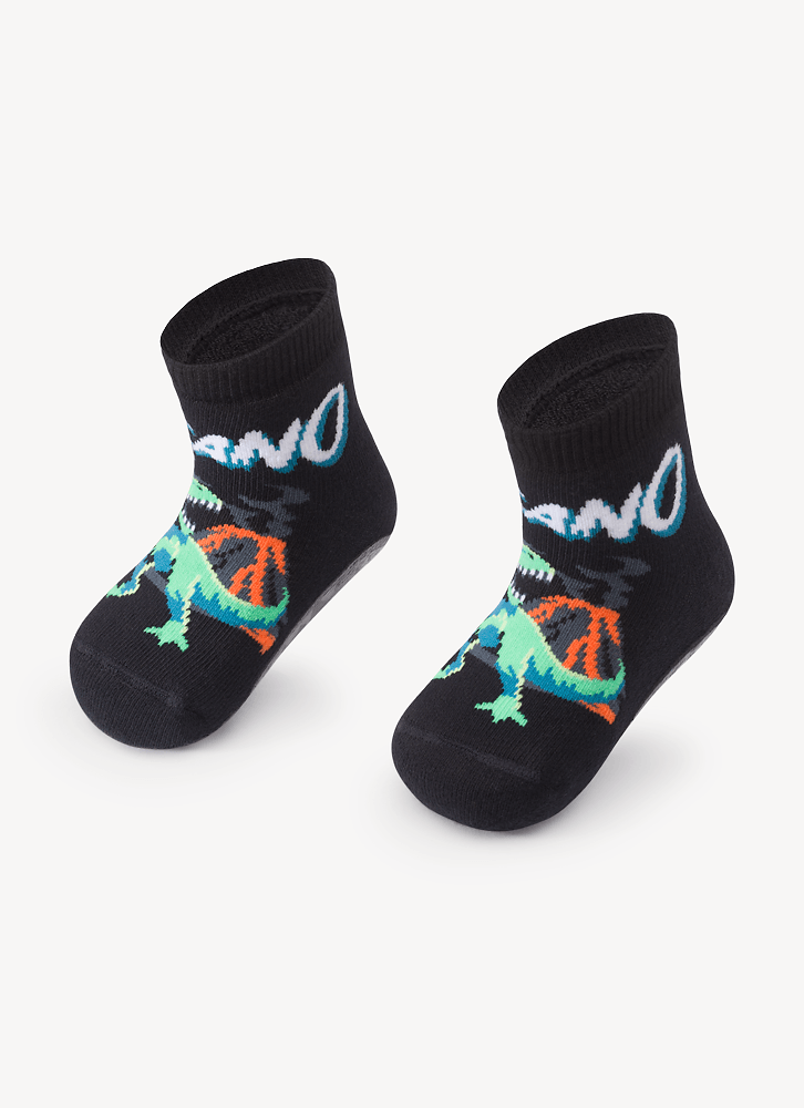 Meia Menino Soquete com sola emborrachada Dino Vulcão