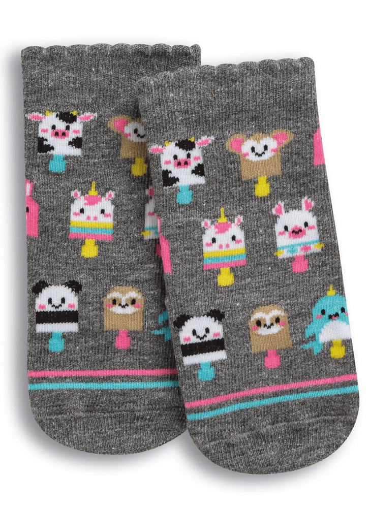 A meia soquete baby é produzida em algodão macio, possui cano alto confortável e desenho divertido.