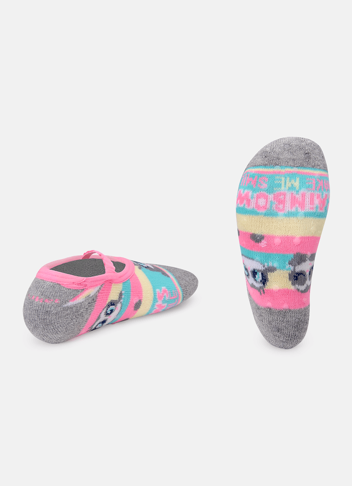 Meia Menina Sapatilha com Antiderrapante Preguiça Rainbow