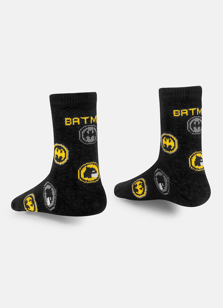 A meia soquete com desenho do Batman Possui cano de altura média. Produzida com algodão macio em sua maior parte em poliamida. Indicação de uso: Ideal para ser usada com tênis e sapatos. Lavagem a mão Não alvejar Instruções de Conservação: Não secar em tambor Não passar Não limpar a seco (MAIS INFORMAÇÕES, VIDE NA ETIQUETA) Instruções de Garantia: Deverá ser encaminhado dentro na embalagem original ACOMPANHADO DE NOTA FISCAL E com todos os itens constante na solicitação da compra