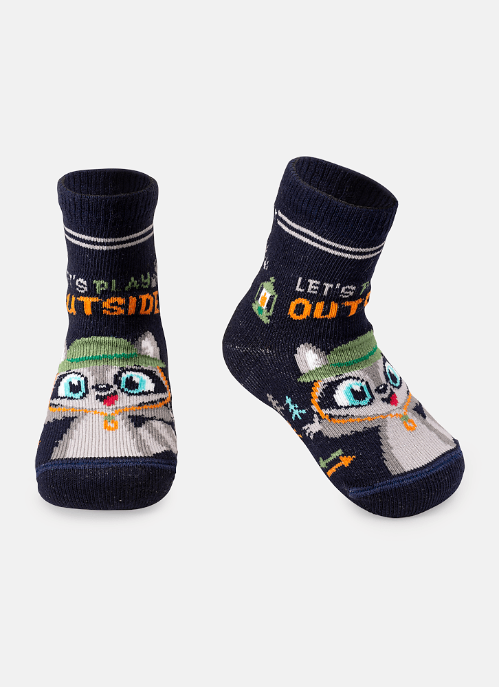 A meia soquete com desenho divertido do guaxinim Possui cano de altura média. Produzida com algodão macio em sua maior parte em poliamida. Indicação de uso: Ideal para usar com sapatos fechados. Instruções de Lavagem: Lavagem a mão Não alvejar Instruções de Conservação: Não secar em tambor Não passar Não limpar a seco (MAIS INFORMAÇÕES, VIDE NA ETIQUETA) Instruções de Garantia: Deverá ser encaminhado dentro na embalagem original ACOMPANHADO DE NOTA FISCAL E com todos os itens constante na solicitação da compra.