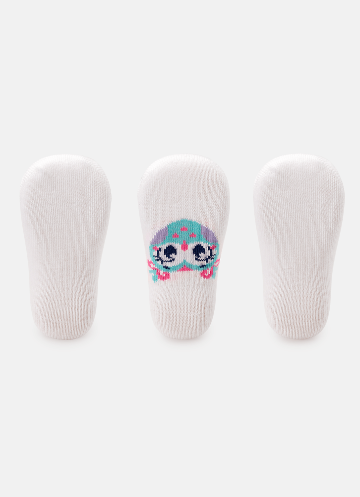 Kit com três pares de meias em algodão macio, sendo duas com desenhos divertidos e uma em cor lisa. Possuem cano confortável de altura média. Indicação de uso: Ideal para ser usada com tênis e sapatos. Instruções de Lavagem: Lavagem a mão Não alvejar Instruções de Conservação: Não secar em tambor Não passar Não limpar a seco (MAIS INFORMAÇÕES, VIDE NA ETIQUETA) Instruções de Garantia: Deverá ser encaminhado dentro na embalagem original ACOMPANHADO DE NOTA FISCAL E com todos os itens constante na solicitação da compra.
