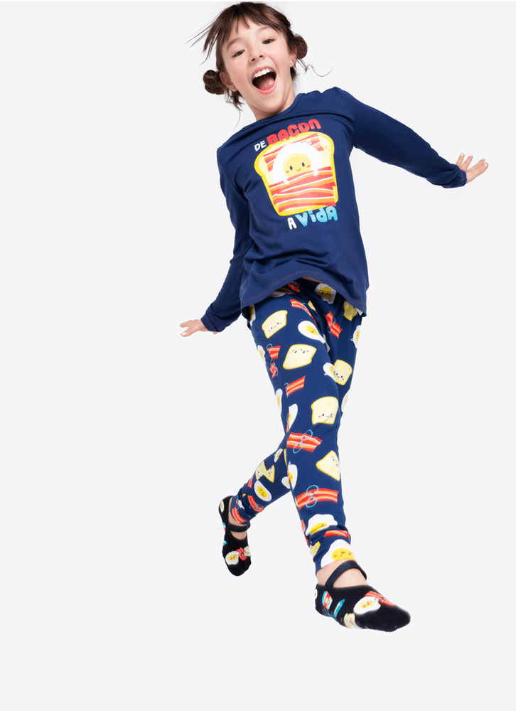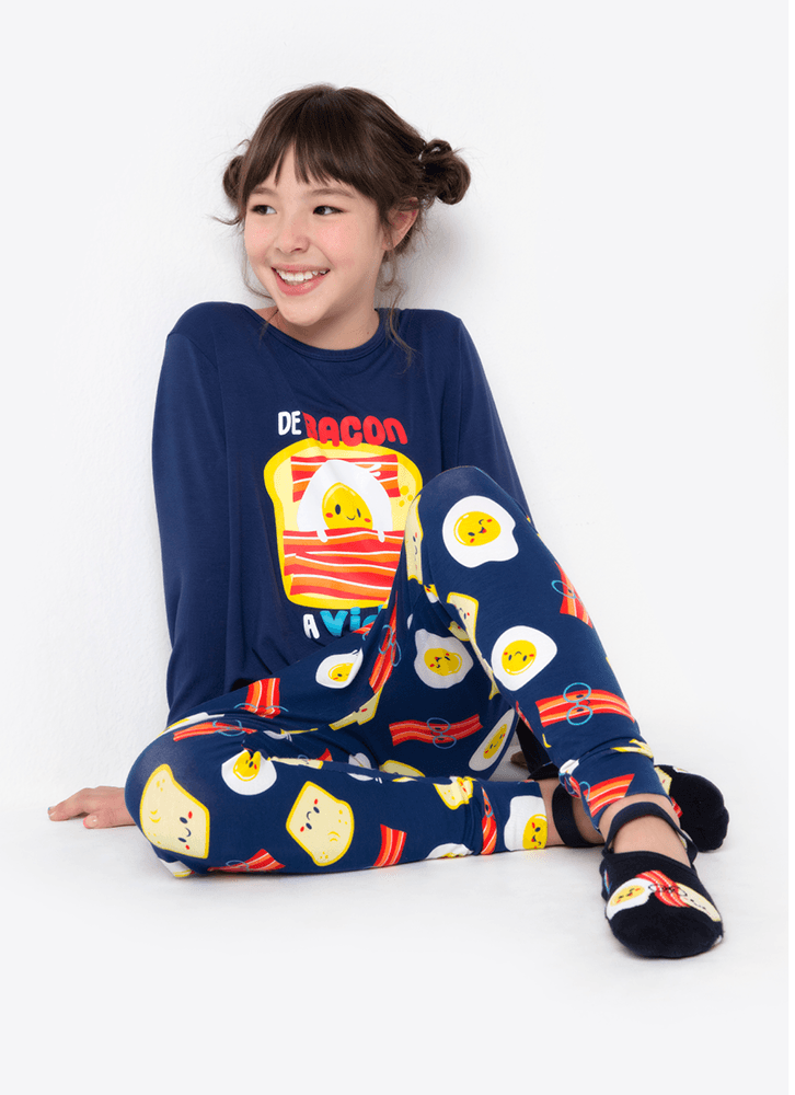 Pijama Manga Longa Menina Viscolycra Família de Bacon a Vida