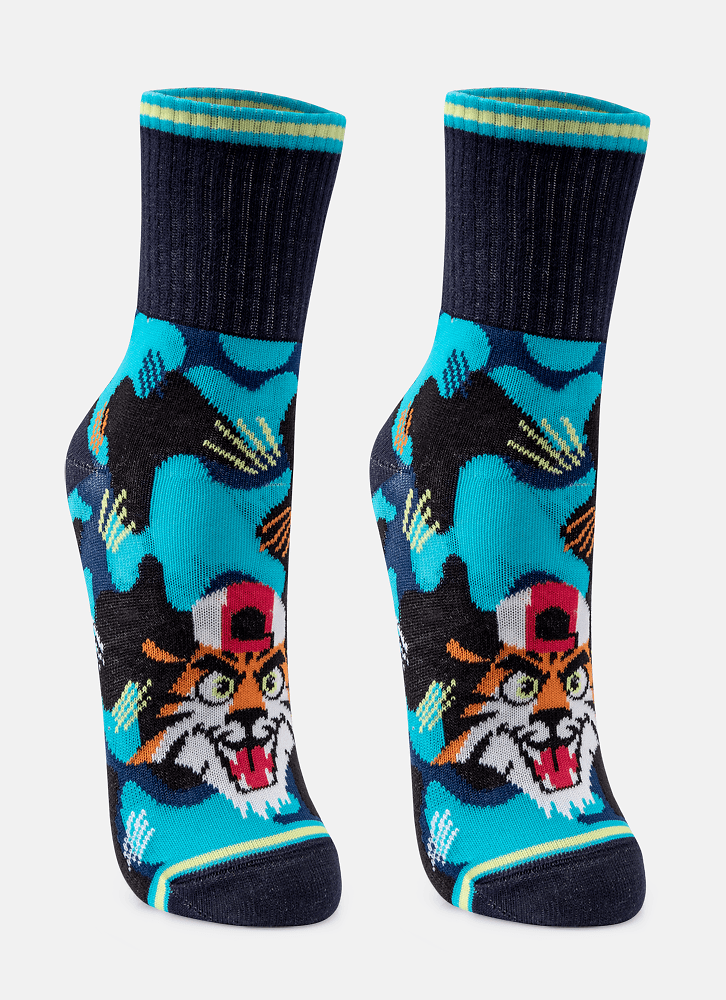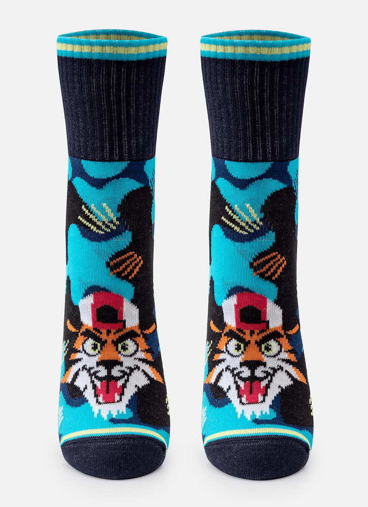 Meia basica infantil Tigre, com punho canelado e de altura alta Detalhes:• A meia básica possui cano mais longo; mais ou menos na metade da canela, com desenho divertido do Tigre• Calcanhar verdadeiro • Punho canelado super confortavel • Produzida com algodão macio em sua maior parte do desenho é poliamida. Indicação de uso:Ideal para usar com sapatos fechados e para compor com o seu look, deixando ainda mais divertido.Instruções de Lavagem:Lavagem a mãoNão alvejar Instruções de Conservação:Não secar em tamborNão passarNão limpar a seco(MAIS INFORMAÇÕES, VIDE NA ETIQUETA) Instruções de Garantia:Deverá ser encaminhado dentro na embalagem originalACOMPANHADO DE NOTA FISCALE com todos os itens constante na solicitação da compra.