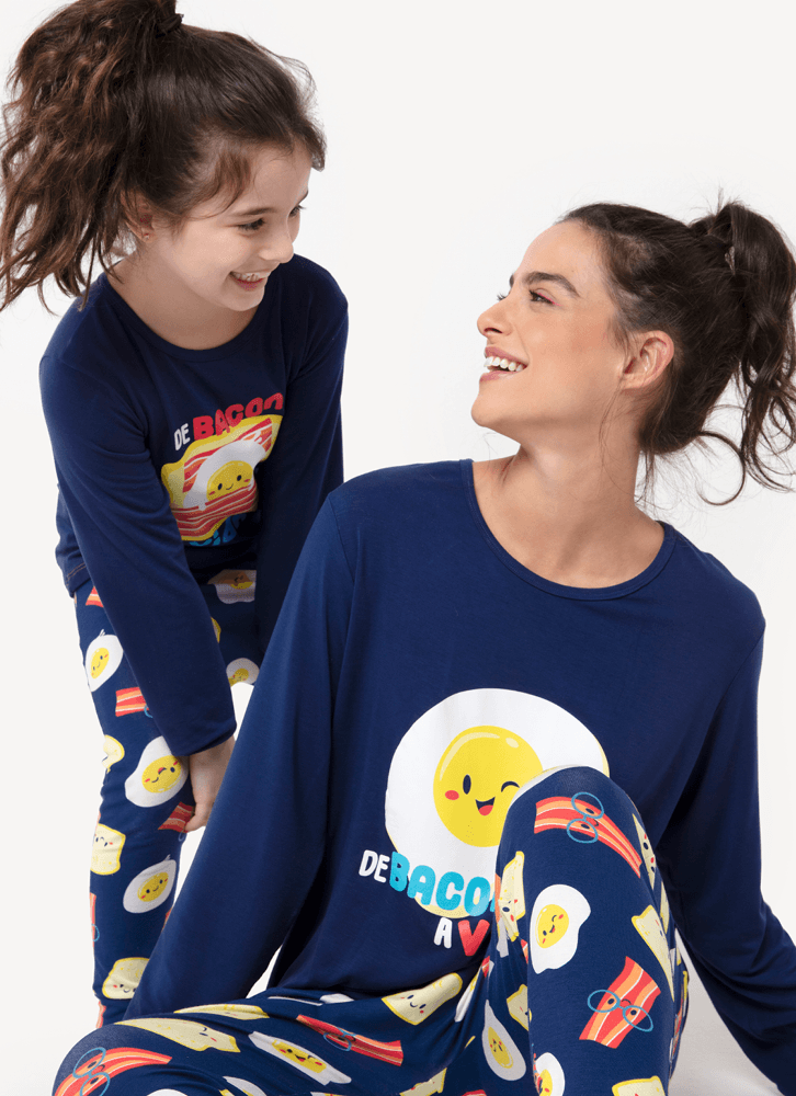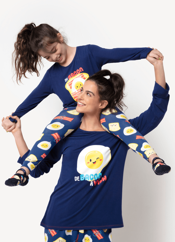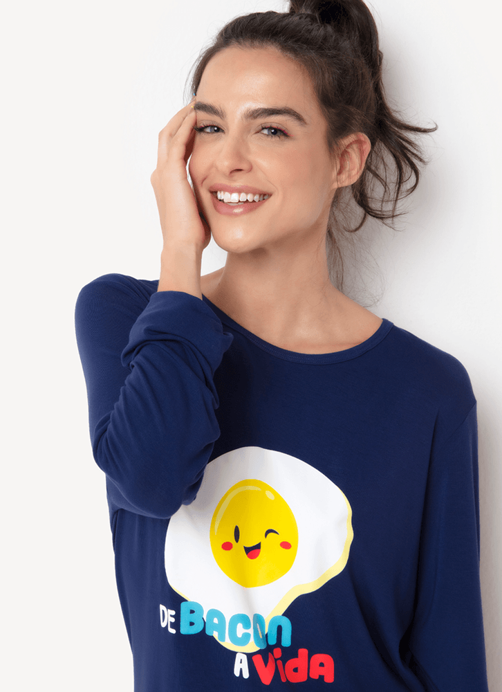 Pijama Manga Longa Feminino Viscolycra Família de Bacon a Vida