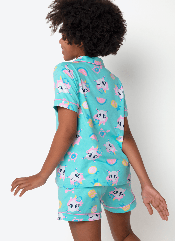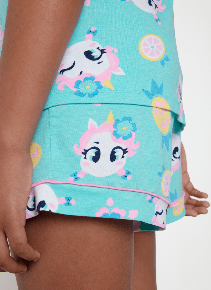 Pijama Manga Curta Viscolycra Menina Teen Unicórnio Aloha