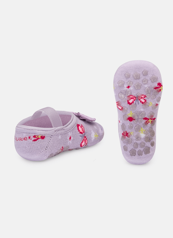 - Meia sapatilha desenhada com aplique de laço aplicado e costurado no centro frente da meia . - Produzida com algodão macio em sua maior parte. - Possui acabamento em viés e, elástico confortável. - Solado com antiderrapante com aroma de cheirinho de bebê. Indicação de uso: Ideal para praticar exercícios e brincadeiras sem o calçado e uso no dia a dia. Cuidados: Lavar a mão, não alvejar; não secar em tambor, não passar e não limpar a seco. Para mais informações, vide a etiqueta. Garantia: Deve ser encaminhado dentro da embalagem original, acompanhado da nota fiscal e com todos os itens constante na solicitação da compra.