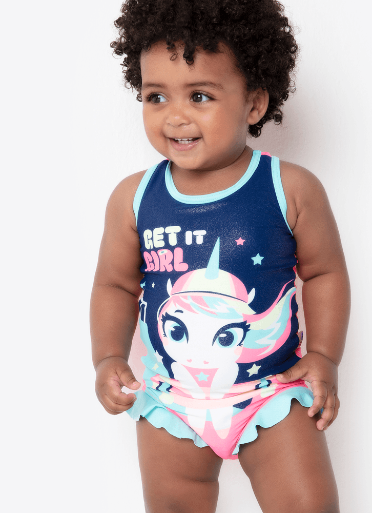 Descrição: maiô baby com estampa frontal toque zero. Possui aplique de babadinho nas pernas, botões de pressão inferiores para facilitar a troca e glitter salpicado por toda a peça. Nome do Produto: Maiô baby uni skate. Modelagem: maiô com botão de pressão. Estampa: estampa frontal toque zero Diferencial: glitter salpicado por toda a peça Tecido externo: 85% poliéster e 15% elastano. Tecido interno: 95% poliamida e 05% elastano. Ocasião de uso: Ideal para usar em clubes, academias, piscinas, praia. Grade: 3-6/6-9/9-12 - Diferencial do produto: glitter salpicado em toda a peça, tecido com toque macio; produto altamente resistente ao cloro; proteção solar UV (não substitui o uso de filtro solar); conforto. - Como lavar e conservar bem meu produto: Lavagem à mão, temperatura máxima de 40c; não alvejar / não branquear; não secar em tambor; secagem em varal; não passar; não limpar a seco, não remover manchas com solventes; não guarde a peça úmida ; não use amaciantes ou produtos com alvejantes a base de cloro; evite contato com superfícies ásperas ; cloro e bronzeadores podem manchar o produto; após o uso, enxague bem a peça com agua fria; a contínua exposição à luz forte e água clorada pode deteriorar alguns tipos de tecidos e cores. - Garantia por defeito: Deverá ser encaminhado dentro da embalagem original; Sem indícios de uso; acompanhado de nota fiscal e com todos os itens constantes na solicitação de troca.
