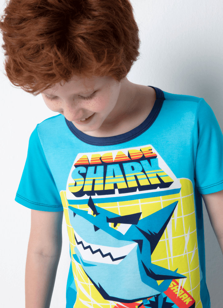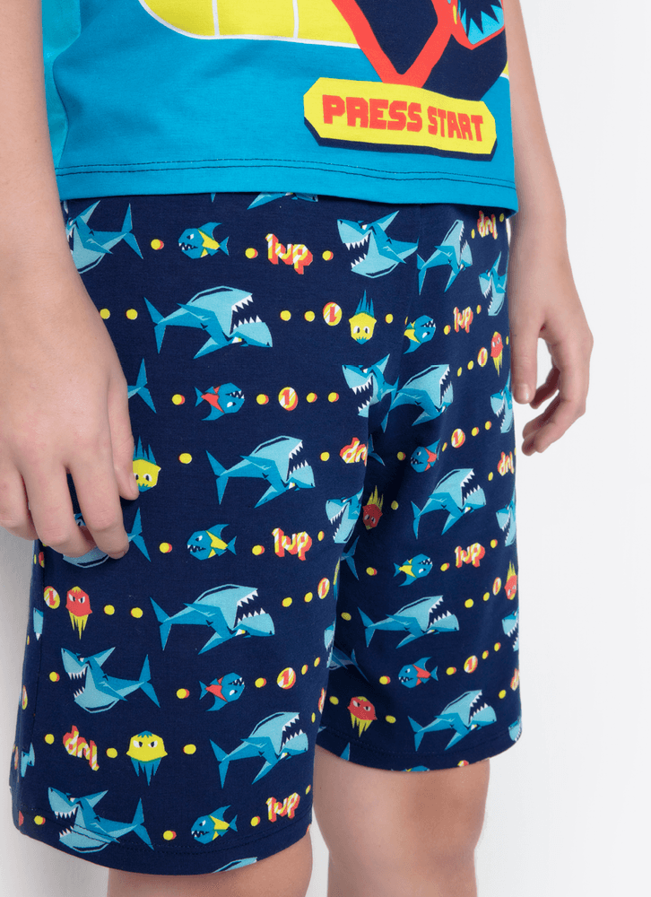 Pijama Manga Curta Menino Teen Viscolycra Tubarão Gamer