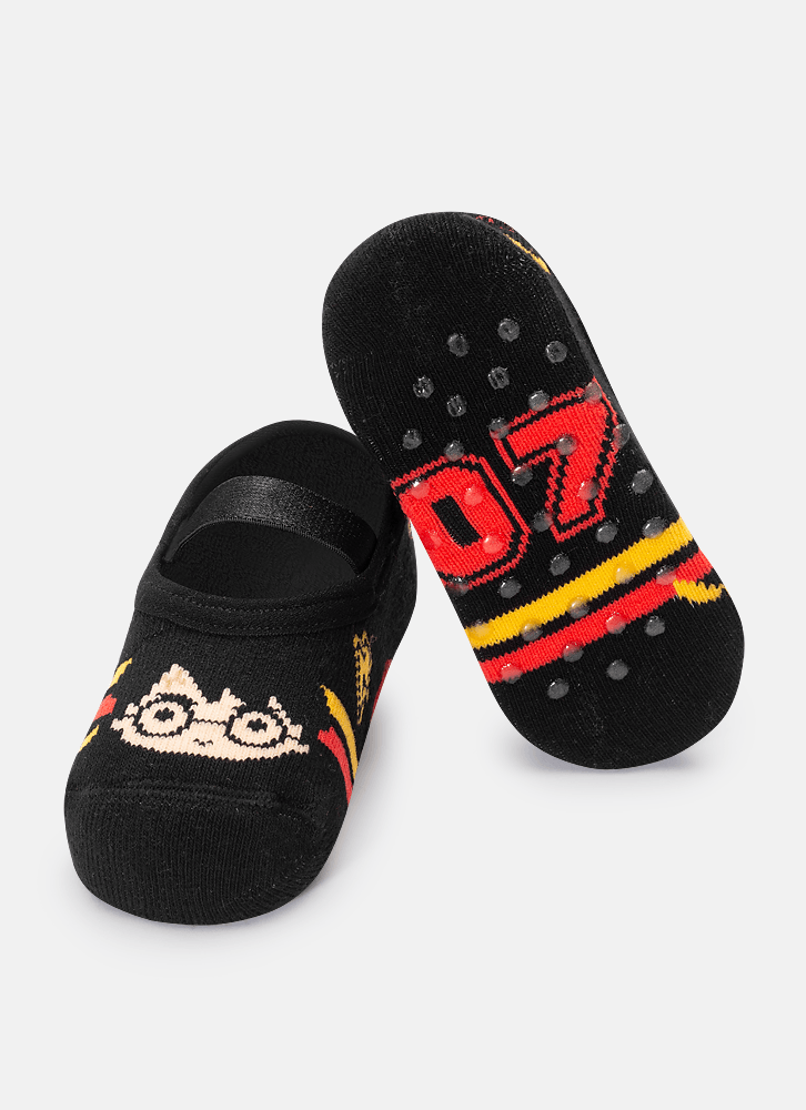 Meia sapatilha, toda atoalhada e com desenho do Harry Potter. Produzida com algodão macio em sua maior e desenho em poliamida. Possui acabamento em viés e elástico confortável. Solado com antiderrapante sem aroma. Indicação de uso: Ideal para praticar exercícios e brincadeiras sem o calçado e uso no dia a dia. Instruções de Lavagem: Lavagem a mão Não alvejar Instruções de Conservação: Não secar em tambor Não passar Não limpar a seco (MAIS INFORMAÇÕES, VIDE NA ETIQUETA) Instruções de Garantia: Deverá ser encaminhado dentro na embalagem original ACOMPANHADO DE NOTA FISCAL E com todos os itens constante na solicitação da compra.