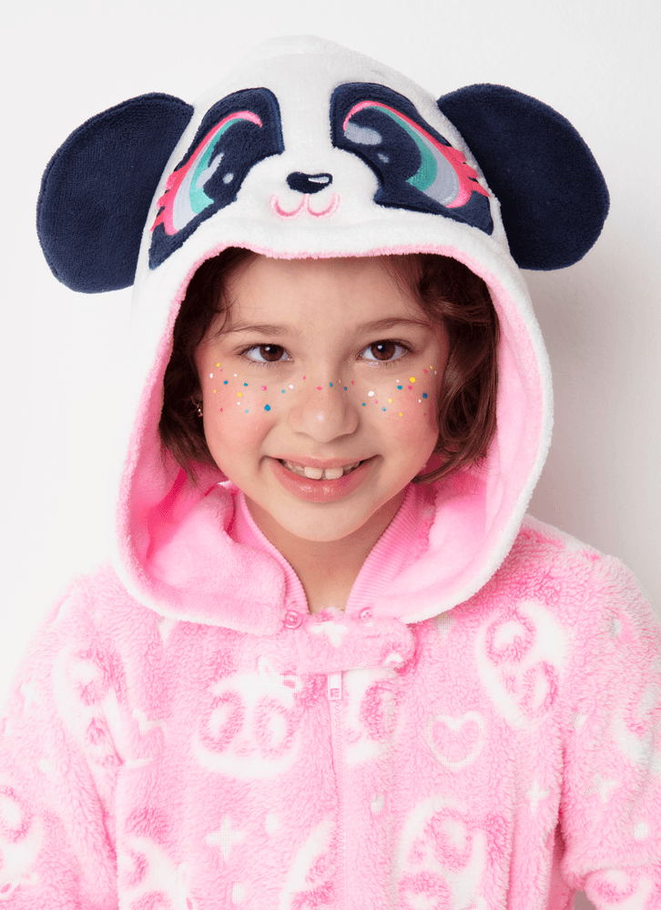 Macacão em coral fleece com estampa do panda Puket <3 Possui toque macio devido a sua característica felpuda o que torna o pijama super quentinho e confortável. Ideal para aconchegar noites frias. - Macacão todo em estampa corrida e fecho frontal em zíper; - Capuz bordado e com aplique 3D do rostinho do personagem; - Zíper com acabamento de segurança interno; - Punhos da manga e barra em ribana. Lavagem e conservação: Lavagem à mão; não alvejar; não secar em tambor; não passar; não limpar a seco (para mais informações, consulte a etiqueta fixada ao produto). Garantia: Deverá ser encaminhado dentro da embalagem original; sem indicações de uso; acompanhado de nota fiscal e com todos os Itens constante na solicitação da compra.