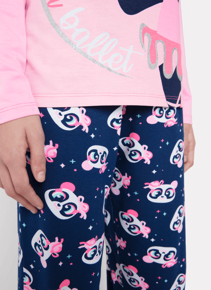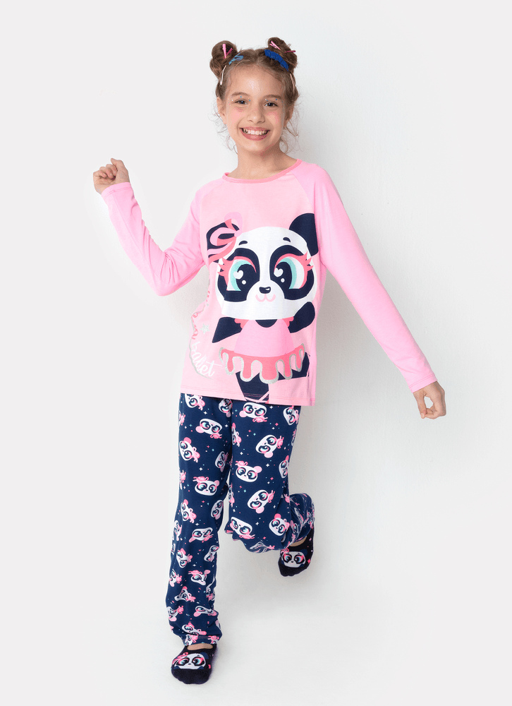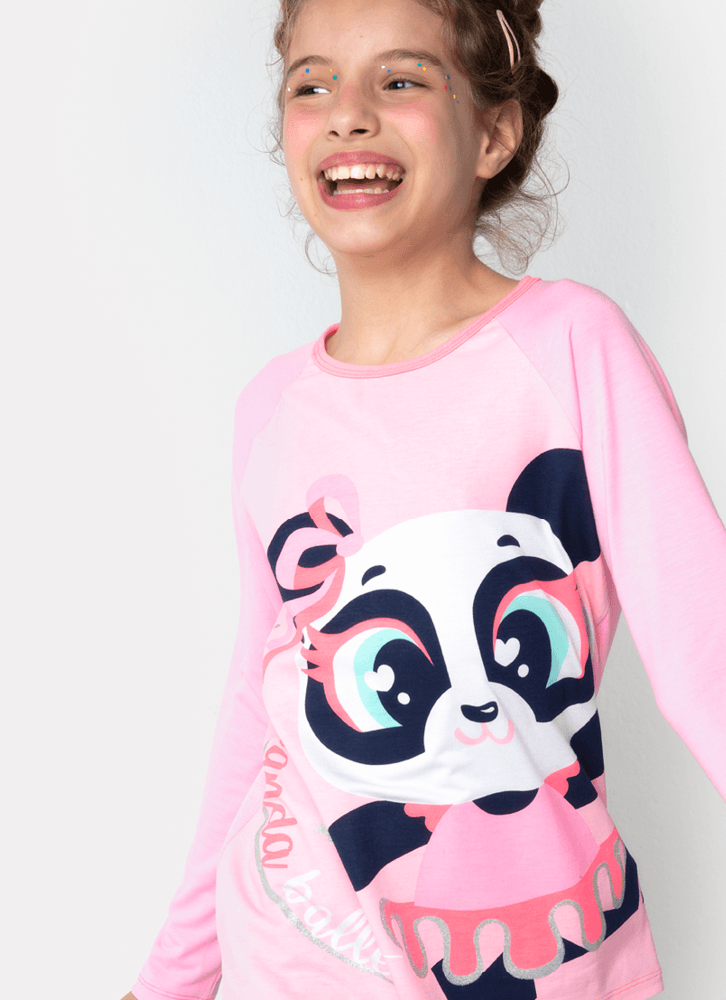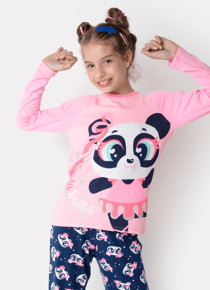 Pijama Manga Longa Menina Teen Viscolycra Panda Bailarina