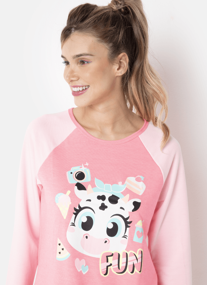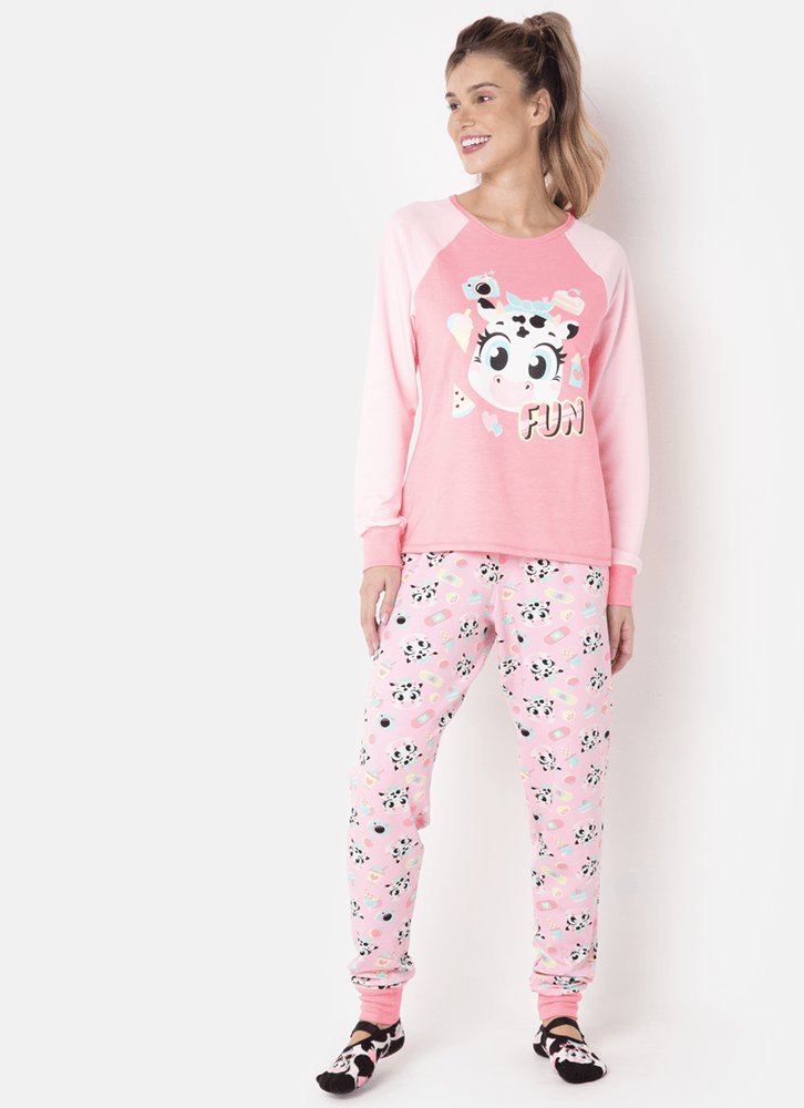 Pijama Manga Longa Feminino Ultra Visco Vaca