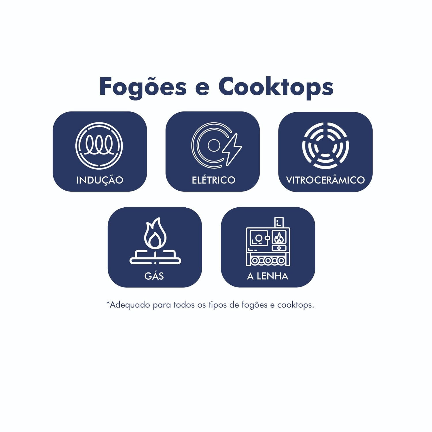 - Nosso Esmaltado é compatível com os fogões a Gás, Elétrico, Vitrocerâmico, Indução e à Lenha.